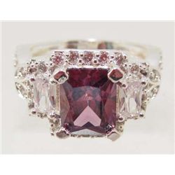 STERLING SILVER PLATED AMETHYST & CRYSTAL RING - SZ. 8