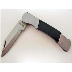3 1/8" closed lockback. 2 1/8" stainless clip point blade. Stainless handle with hunter green composition inlays and stainless bolsters.