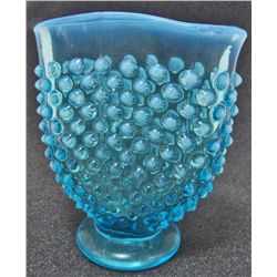 VINTAGE FENTON HOBNAIL BLUE OPALESCENT GLASS FAN VASE