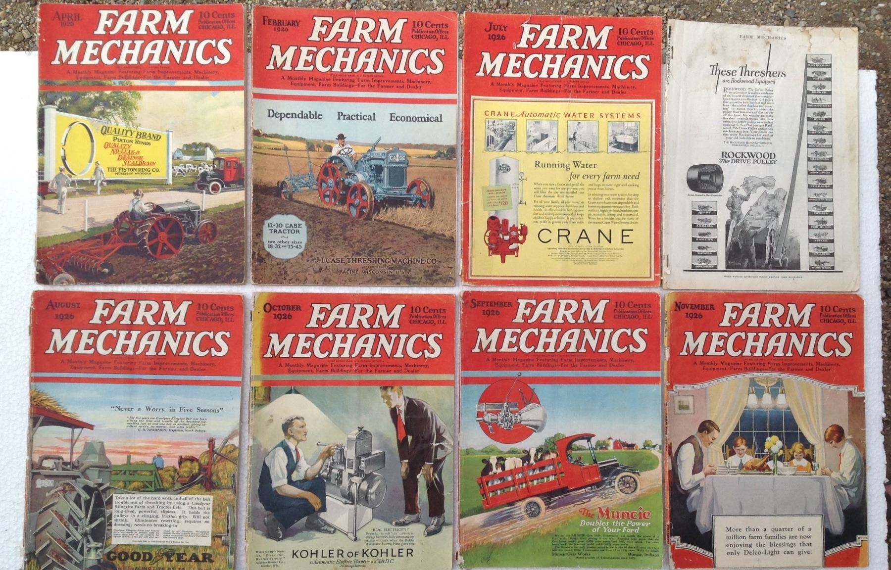 (8) 1926 Farm Mechanic Magazines