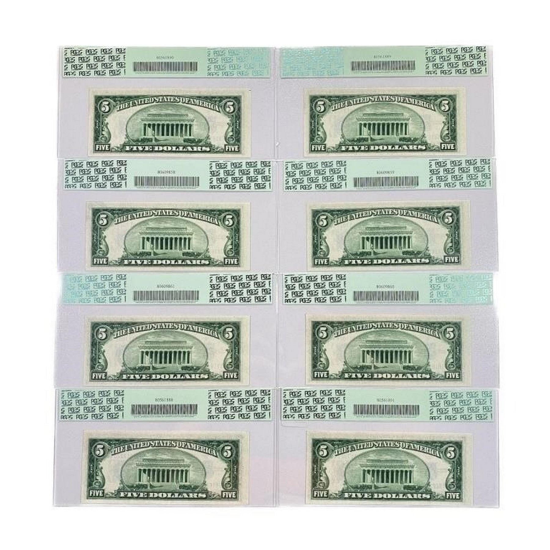 f. Notes sold referencing a third-party grading service are sold "AS IS" without any express or implied warranty, except for guarantee by GSA that they are genuine. Grading, condition or other attributes of any Product may have a material effect on its value and the opinion of others, including third-party grading services such as PCGS Currency and PMG may differ with that of GSA. GSA shall not be bound by any prior or subsequent opinion, determination, or certification by any grading service. Bidders specifically waive any claim to right of return of any Product because of the opinion, determination, or certification, or lack thereof, by any grading service. Certain warranties may be available from the grading services and Bidders are referred to them for further details: Paper Money Guaranty (PMG), PO Box 4711, Sarasota, FL 34230; PCGS Currency, PO Box 10470, Peoria, IL 61612-0470; PCGS Gold Shield, PO Box 9458, Newport Beach, CA 92658. Third-party graded notes are not returnable for any reason whatsoever.