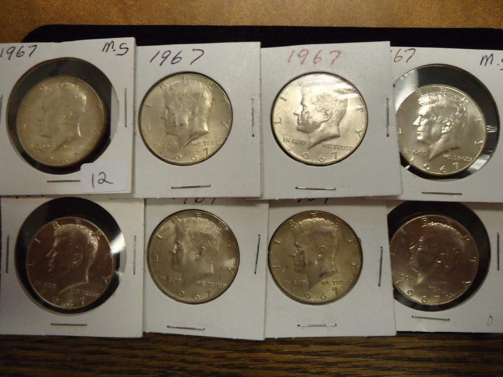 8-1967 40% SILVER KENNEDY HALF DOLLARS