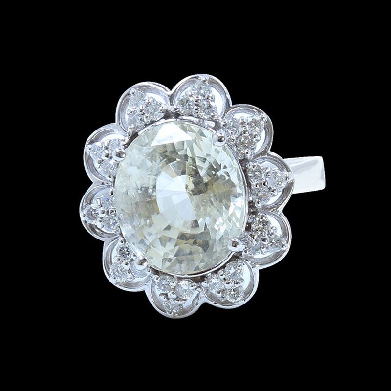 14K WHITE GOLD NATURAL CEYLON YELLOW SAPPHIRE RING :5.11GRAM/YELLOW SAPPHIRE OVAL :8.19CT/DIAMOND RD :0.47CT/#GVR1268