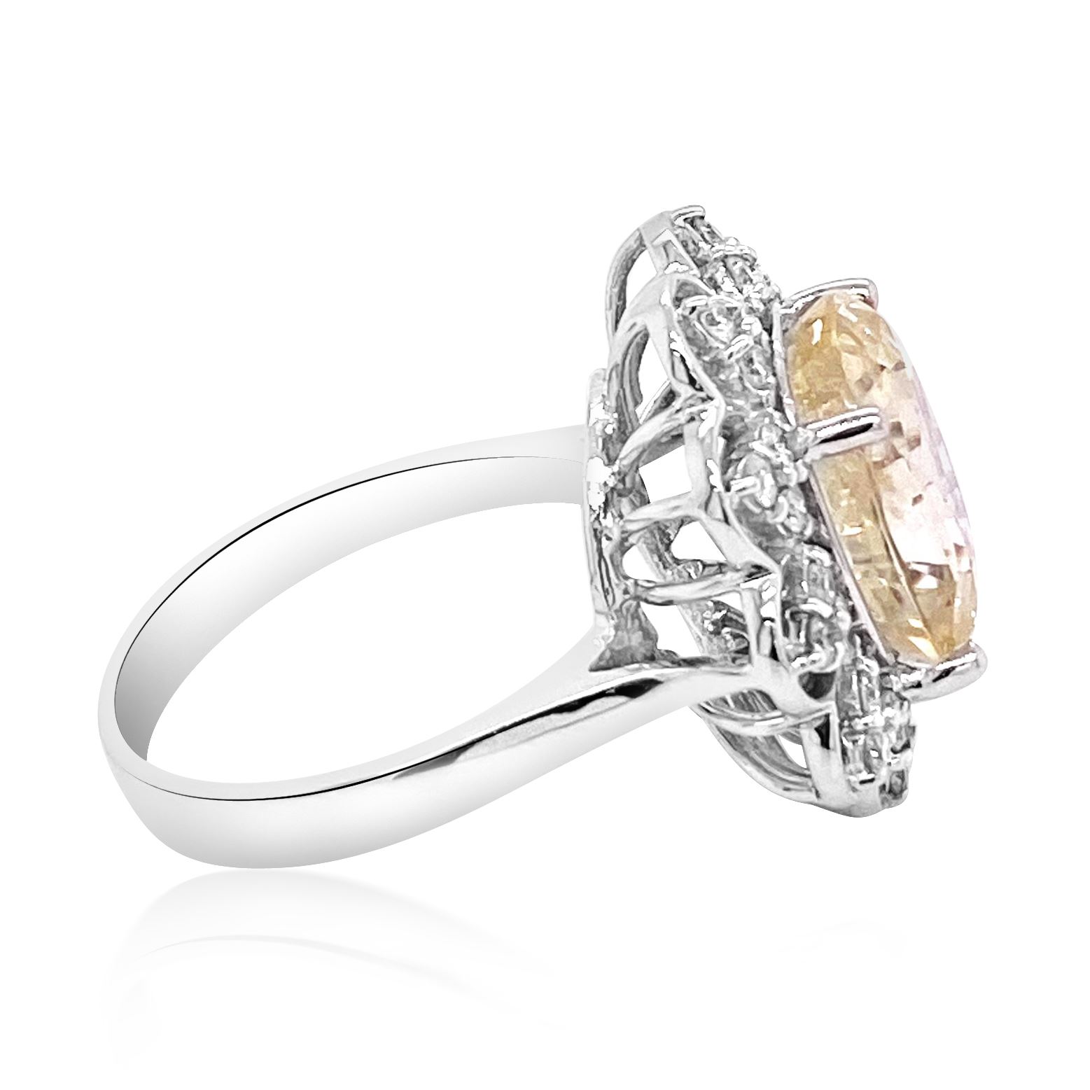 14K WHITE GOLD NATURAL CEYLON YELLOW SAPPHIRE RING :5.11GRAM/NATURAL CEYLON YELLOW SAPPHIRE OVAL :8.19CT/DIAMOND RD :0.47CT/#GVR1268 **Art-fully crafted in 14kt white gold, this delicate style features a dazzling 8.91ct oval shape natural Yellow Sapphire center stone. Yellow Sapphire has long been known as a stone of prosperity. Framed with shimmering 0.47ct round cut Diamonds in a flower motif, a touch of subtle sparkle adds to its classic beauty. this gorgeous ring is an investment piece and secure purchase.**
