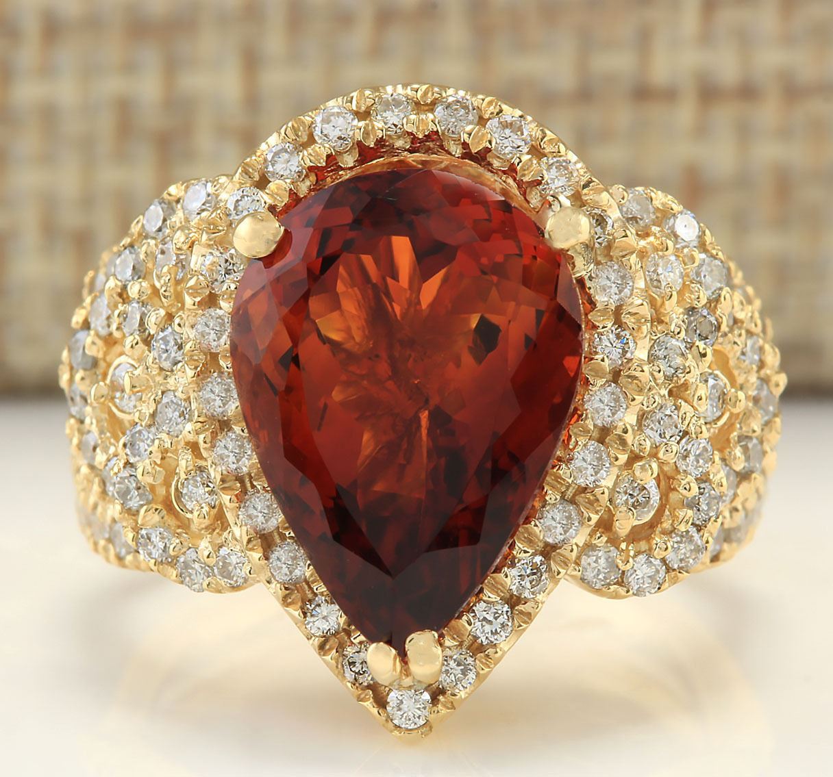8.20 CTW Natural Madeira Citrine And Diamond Ring In 18K Yellow Gold