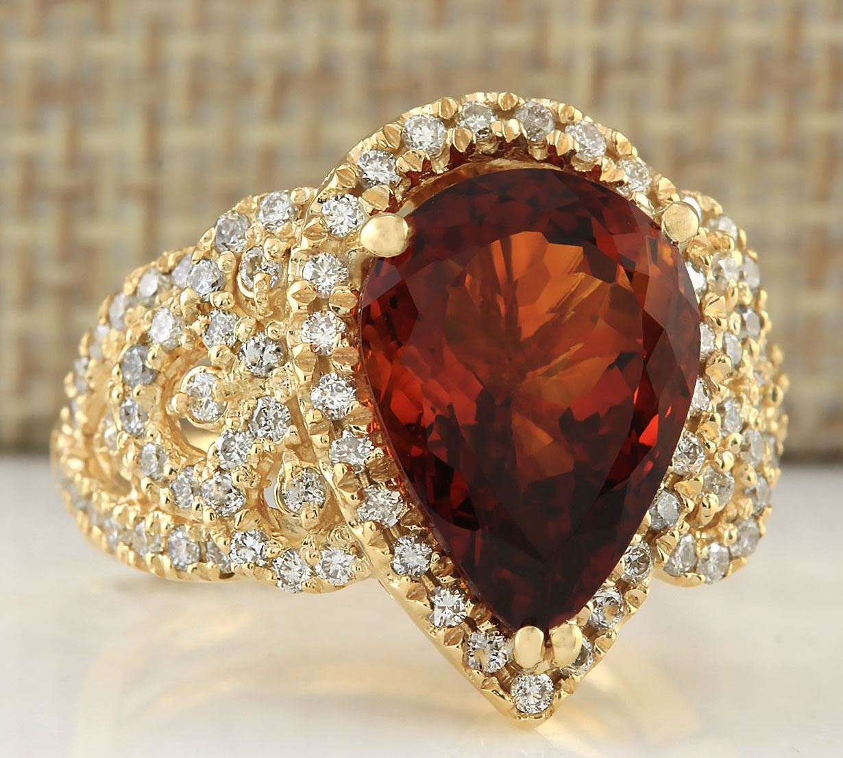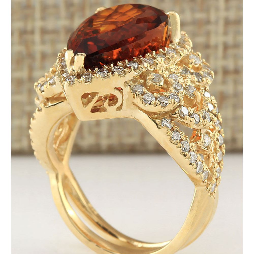8.20 CTW Natural Madeira Citrine And Diamond Ring In 18K Yellow Gold