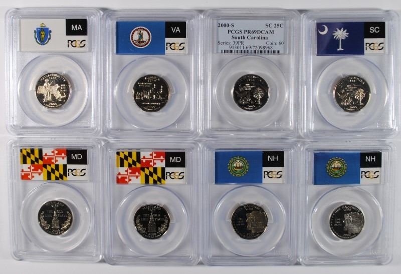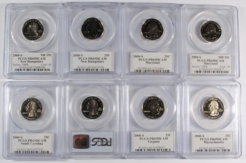 8 - 2000-S PCGS PR69DCAM STATE QUARTER LOT - MASS, VIRGINIA, 2- S. CAROLINA,