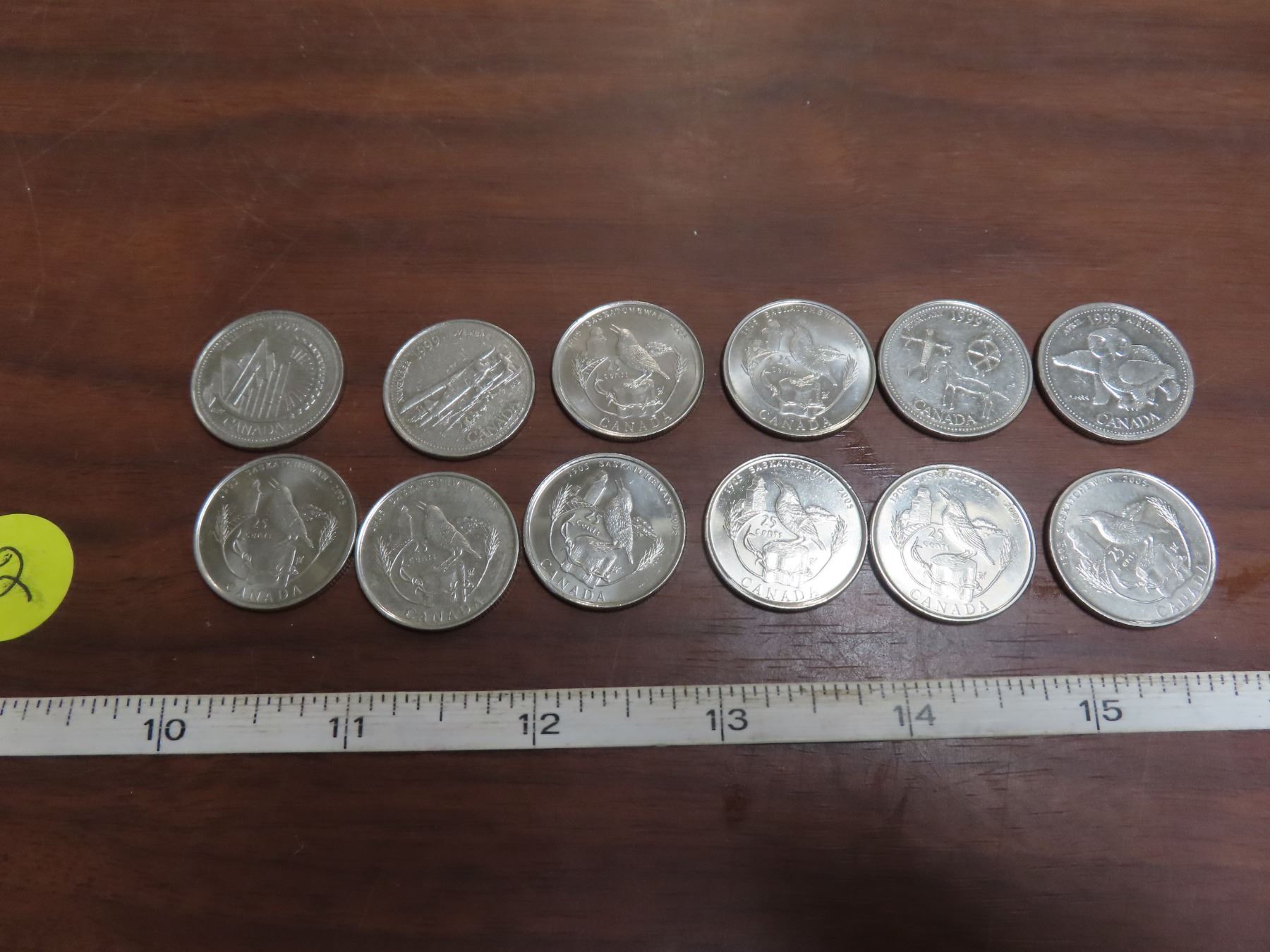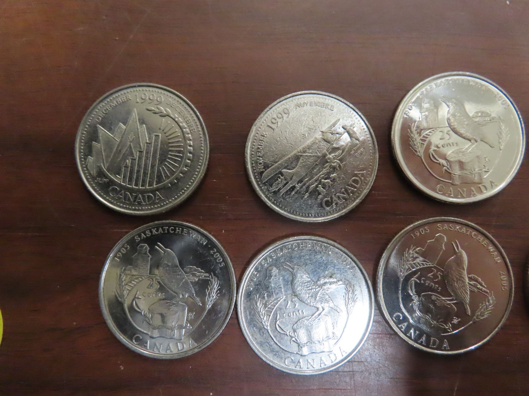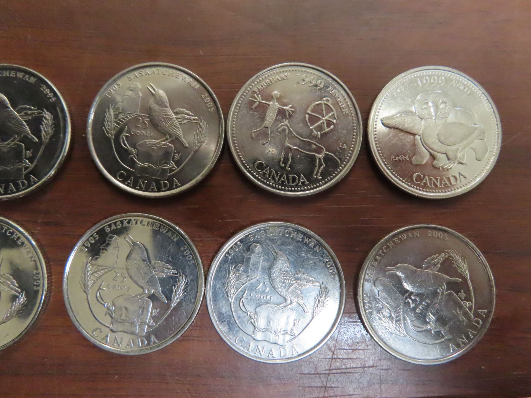 8- 2005 sask- 25 cents coins + #4 1999 25 cent coins