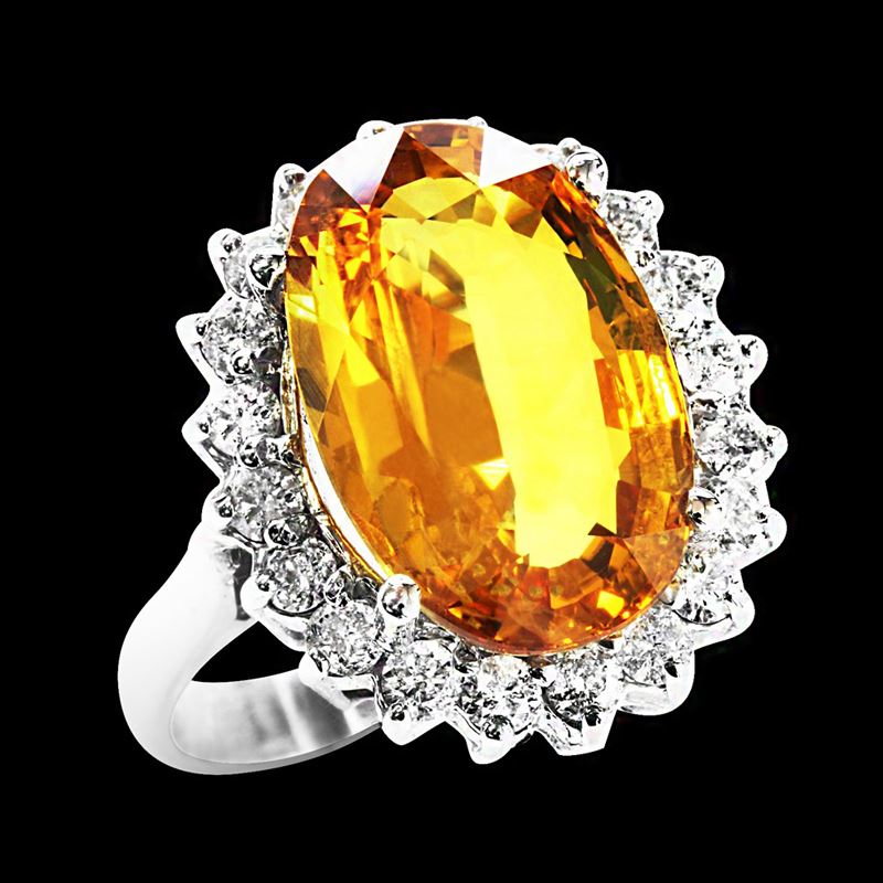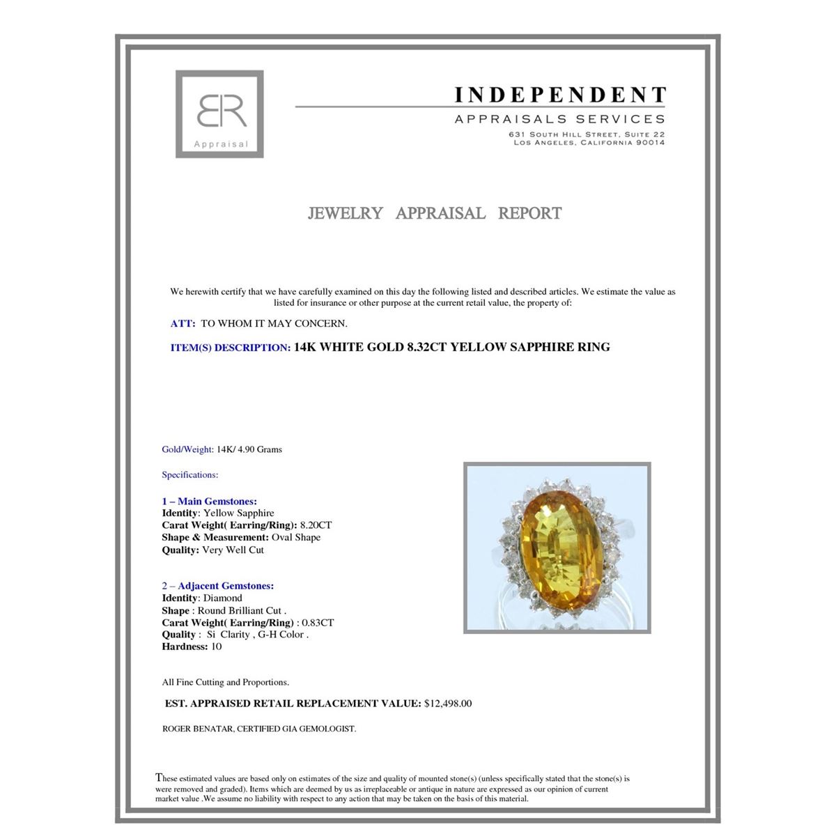 14K WHITE GOLD NATURAL CEYLON SAPPHIRE RING :4.90 GRAMS/YELLOW SAPPHIRE :8.20CT/ DIAMOND RD :0.83CT/#GVR1206