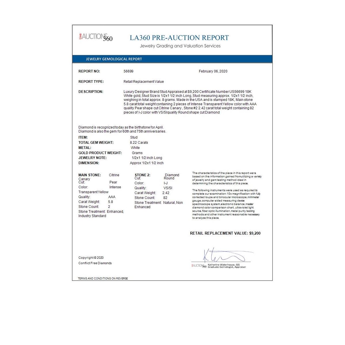 REF-209N3F - SKU: 56699 ---- 8.22 ctw Canary Citrine & Diamond Earrings 18K White Gold