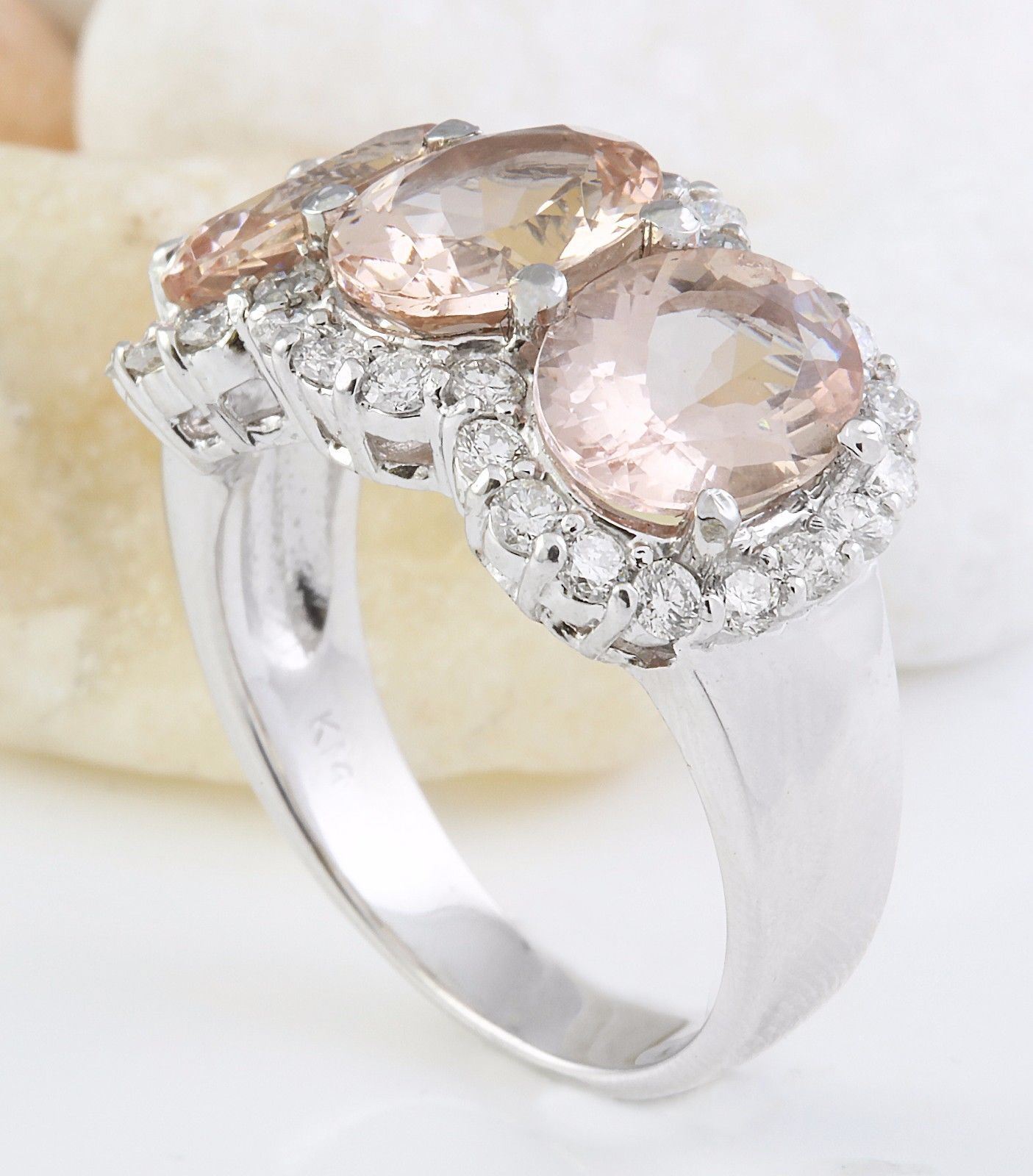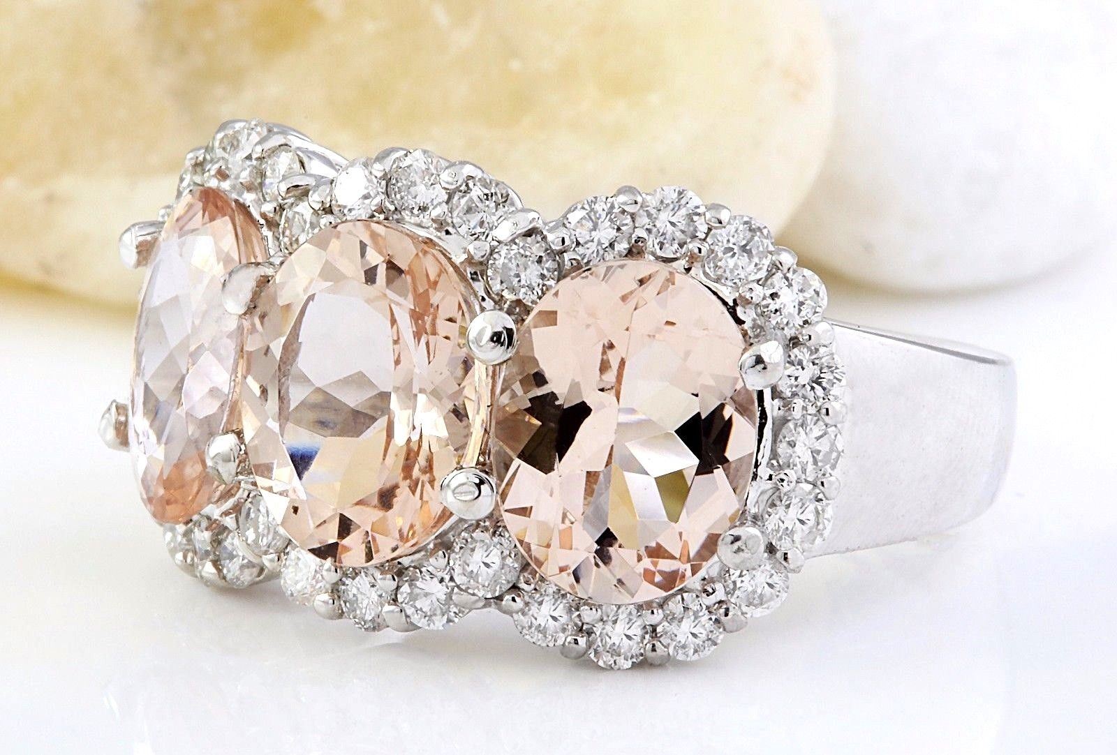 8.23 CTW Natural Morganite 14K Solid White Gold Diamond Ring