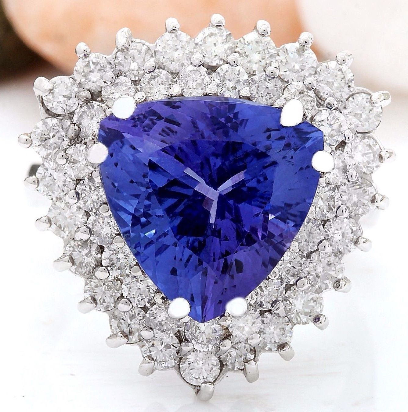 8.23 Carat Natural Tanzanite 14K Solid White Gold Diamond Ring