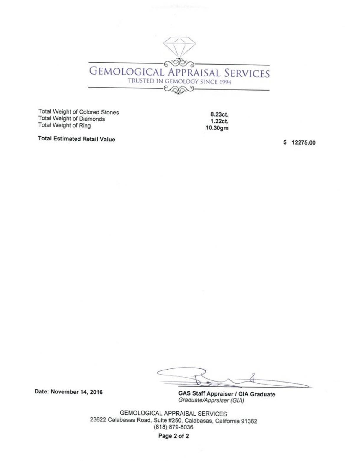 Regarding Appraised Jewelry, Watches and Loose Stones - FAA sends most jewelry, watches, accessories and loose stones out to a third-party for appraisals. All such lots are sold AS IS and may have been worn, been previously repaired, altered, customized (including having been modified with after-market stones or had the bezel changed in its entirety on certain jewelry or watches), or been embellished. For purposes of our actions, the terms custom, modified, or after-market may be used interchangeably. Such wear, repair or changes may display varying levels of evidence. The bidder hereby acknowledges that the absence of any reference to the condition of a lot does not imply the absence of wear, repairs, customization, or defects. While FAA makes every effort to call to the attention of bidders the use of after-market parts in jewelry and watches sold, the use of such parts or stones shall not constitute a warranty or representation that the items are original in their entirety. These modifications, customizations, and alterations may impair the ability of the original manufacturer to repair such item or certify the item as authentic All descriptions and statements related to such lots, including measurement, authorship, source or origin, or other aspects are qualified opines and do not constitute a warranty or representation, and are provided for identification purposes only. Not all Jewelry, watches or loose stones are appraised, and the appraisals are provided for bidders only in certain instances at the discretion of FAA. Our appraisals are conducted by independent third-party appraisal firms. Such firms may be certified GIA Gemologists or have education in the industry or alternative certifications. Appraisals should be used for verification of gemstone and/or metal weight, size, and grade only, not actual value for resale or insurance purposes. Appraisal value should be not considered for actual value, as price varies greatly from retail locations and other merchants in different geographic locations. All Items auctioned by FAA should not be purchased with a view or expectation toward resale for appraisal price given, or to make a profit. The ultimate value for which an item can be resold may vary drastically from the appraisals listed by FAA. All dimensions and weights of such lots are approximate and are consistent with standards and practices in the industry. Condition reports are provided as a service to prospective bidders. Bidders should note that such descriptions are not warranties and that watches may need general service, change of battery or further repair work for which the buyer is solely responsible. Certain watch bands from protected species of animals (i.e. alligator, crocodile) and items made of ivory and tortoise may be subject to restrictions in certain countries.