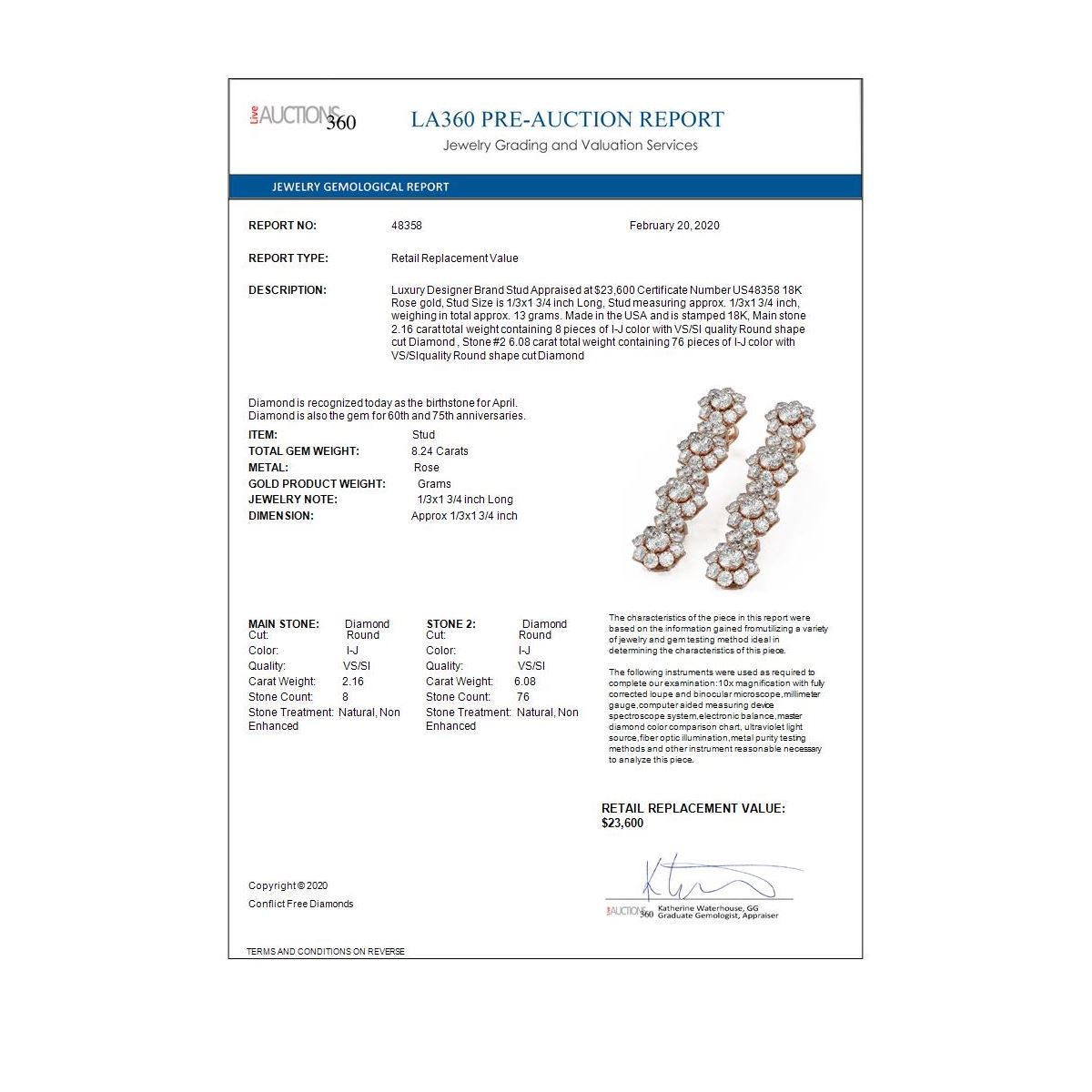 REF-536F6M - SKU: 48358 ---- 8.24 ctw Diamond Designer Earrings 18K Rose Gold