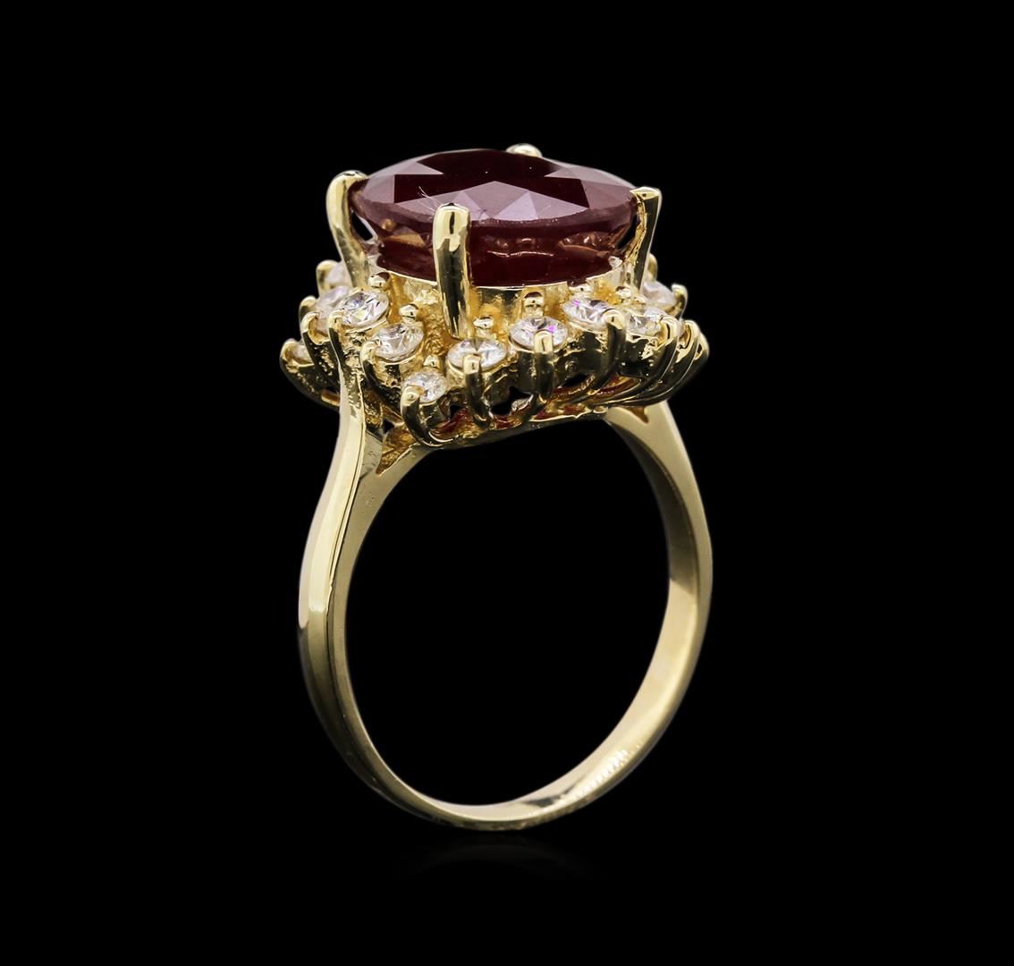 One ring featuring: 14KT yellow gold weighing 5.88 grams containing one ruby with a total weight of 8.25ct and diamonds with a total weight of 0.90ct.