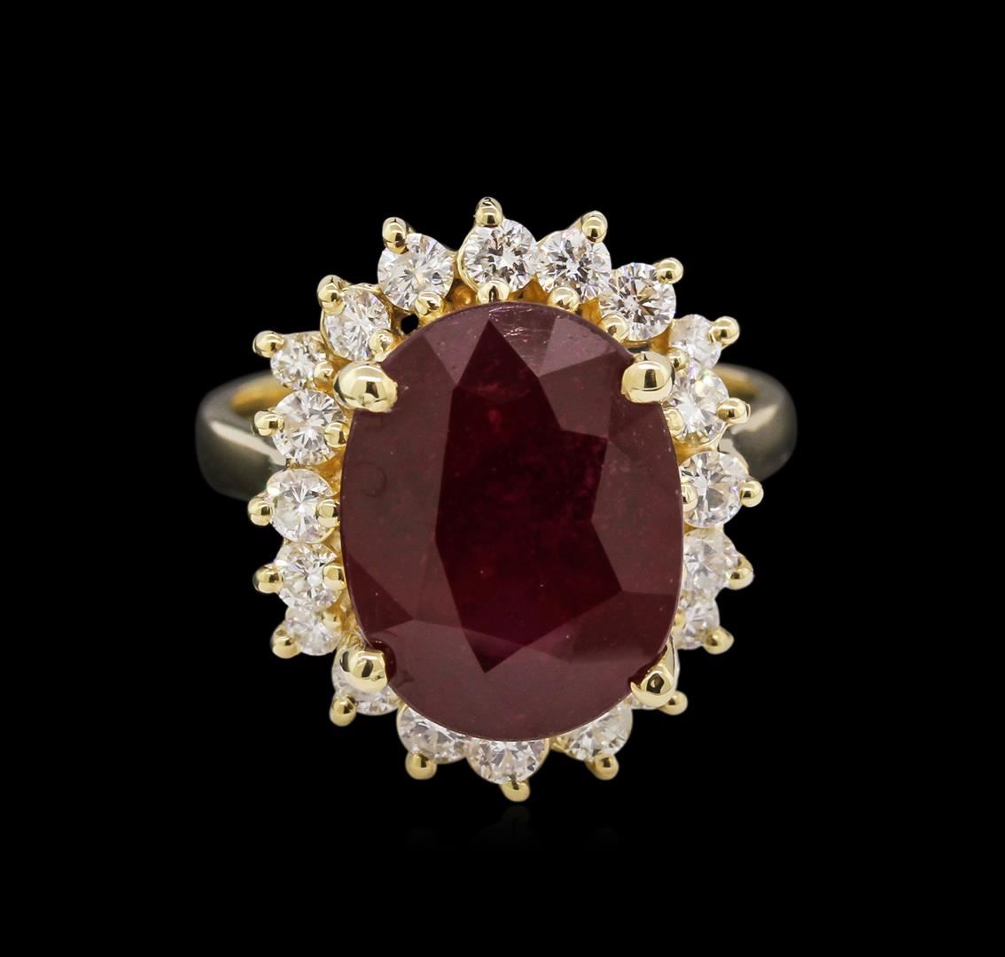 One ring featuring: 14KT yellow gold weighing 5.88 grams containing one ruby with a total weight of 8.25ct and diamonds with a total weight of 0.90ct.