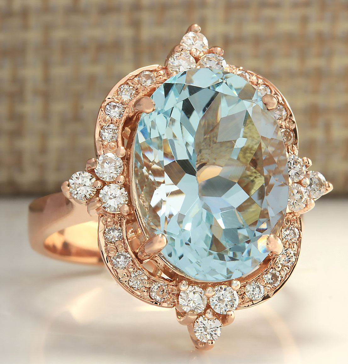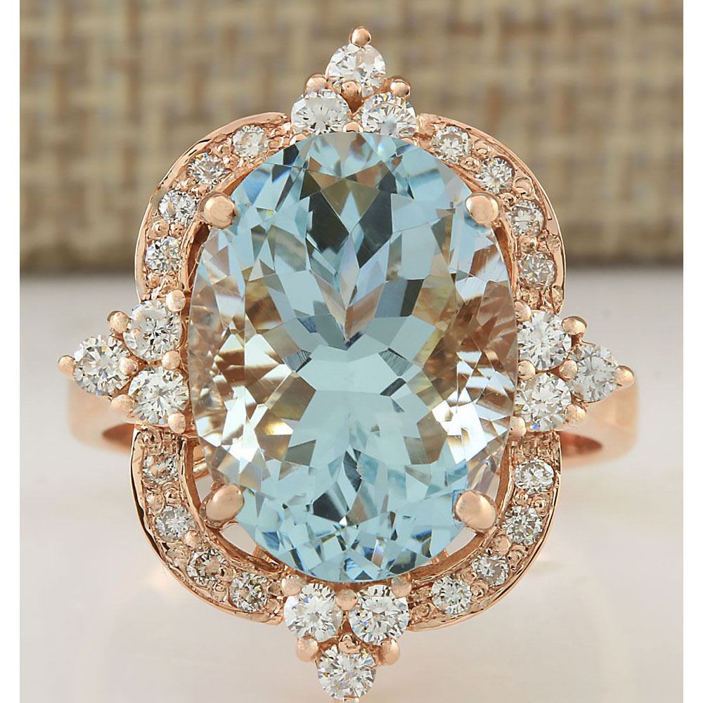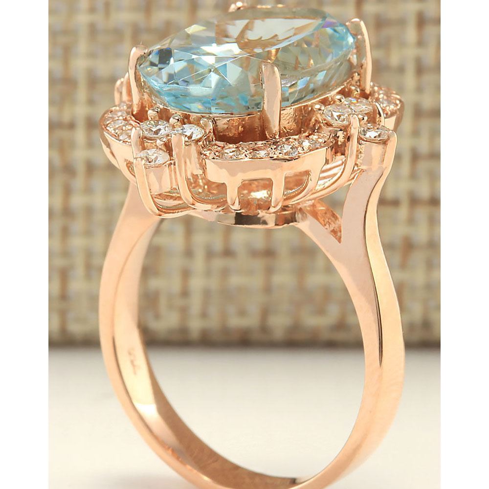 8.27 CTW Natural Aquamarine And Diamond Ring In 18K Rose Gold