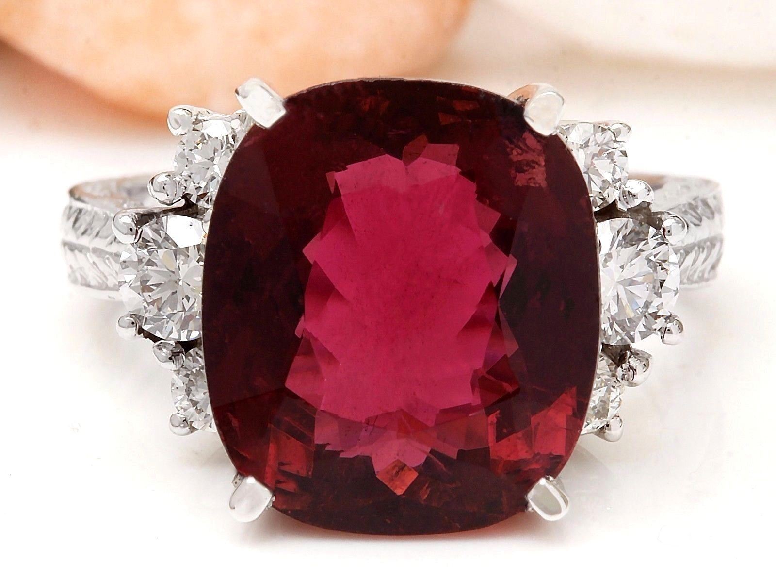 8.28 Carat Natural Tourmaline 14K Solid White Gold Diamond Ring