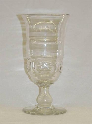 8 3/4" EARLY BLOW CLEAR GLASS CELERY W/ CUT DESIGN and HOLLOW STEM and POLISHED BOTTOM - STEM HAS CLOUDY APPEARANCE;