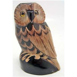 HAND CARVED BUFFALO HORN OWL FIGURINE