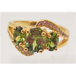 18K GOLD FILLED PERIDOT & CZECH CRYSTAL RING - SZ. 8