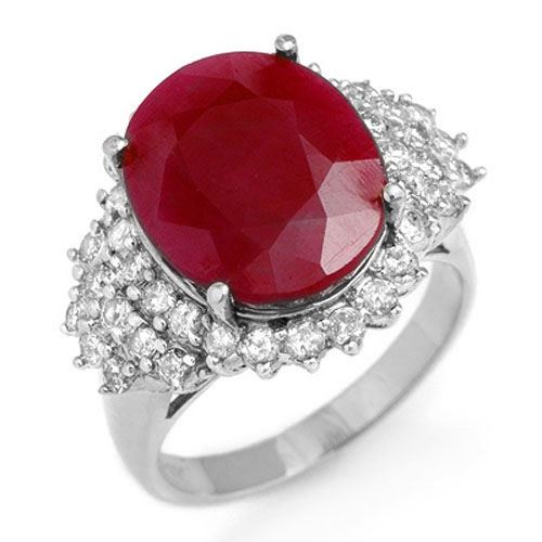 REF-180K2W -12852 ---- 8.32 CTW Ruby & Diamond Ring 18K White Gold ---- Luxury Designer Brand Ring Appraised at $13,850 Certificate Number US12852 18k White gold, Ring Size is 7, Ring measuring approx. 5/8" x 3/4" , weighing in total approx. 7.6 grams. Made in the USA and is stamped 18k, Main stone 7.07 carat total weight containing 1 pieces of Mid-Opaque-Deep Red color with AAA quality Oval shape cut Ruby , Stone #2 1.25 carat total weight containing 38 pieces of H-I color with VS/SI quality Round shape cut Diamond