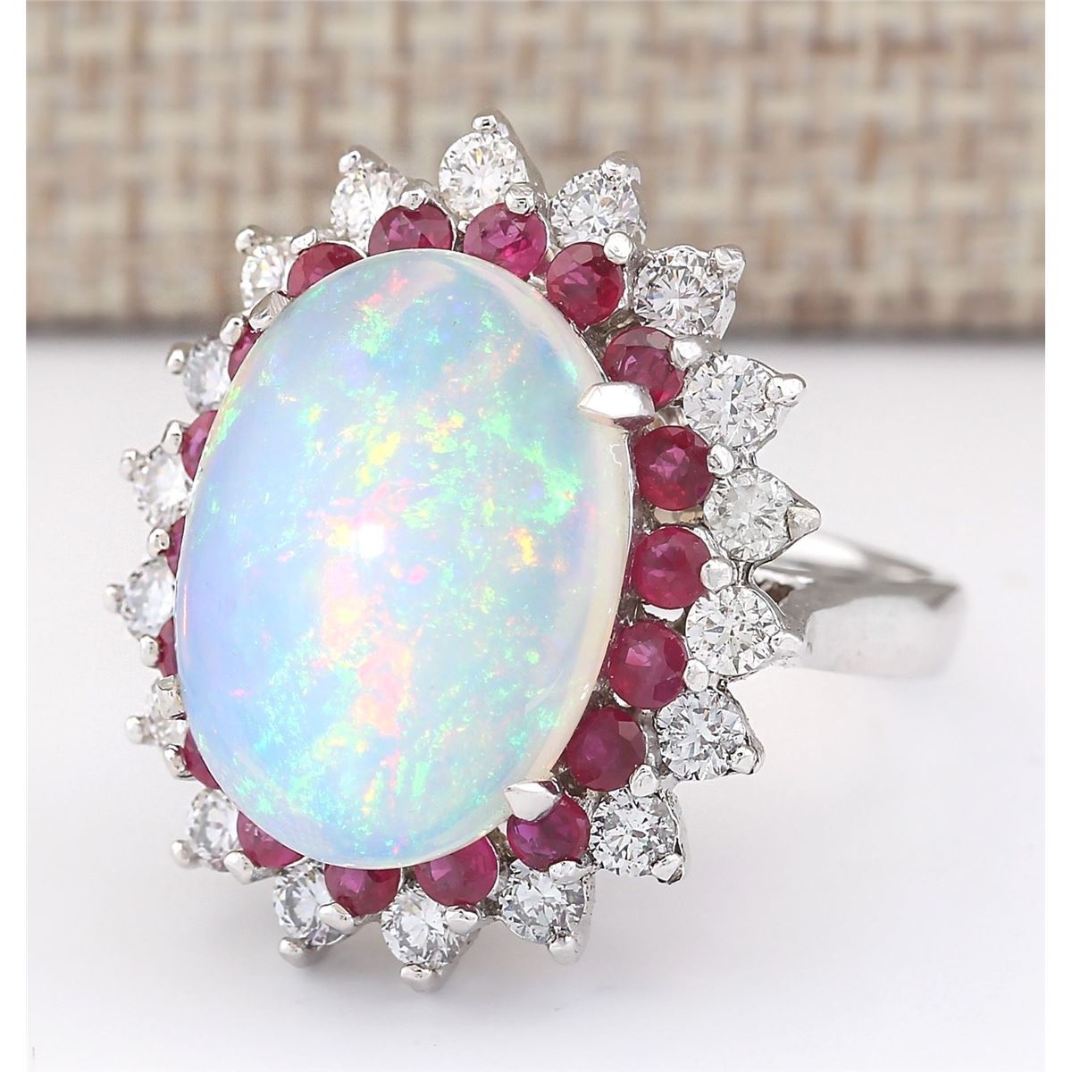 8.33 CTW Natural Opal, Ruby And Diamond Ring In14k White Gold