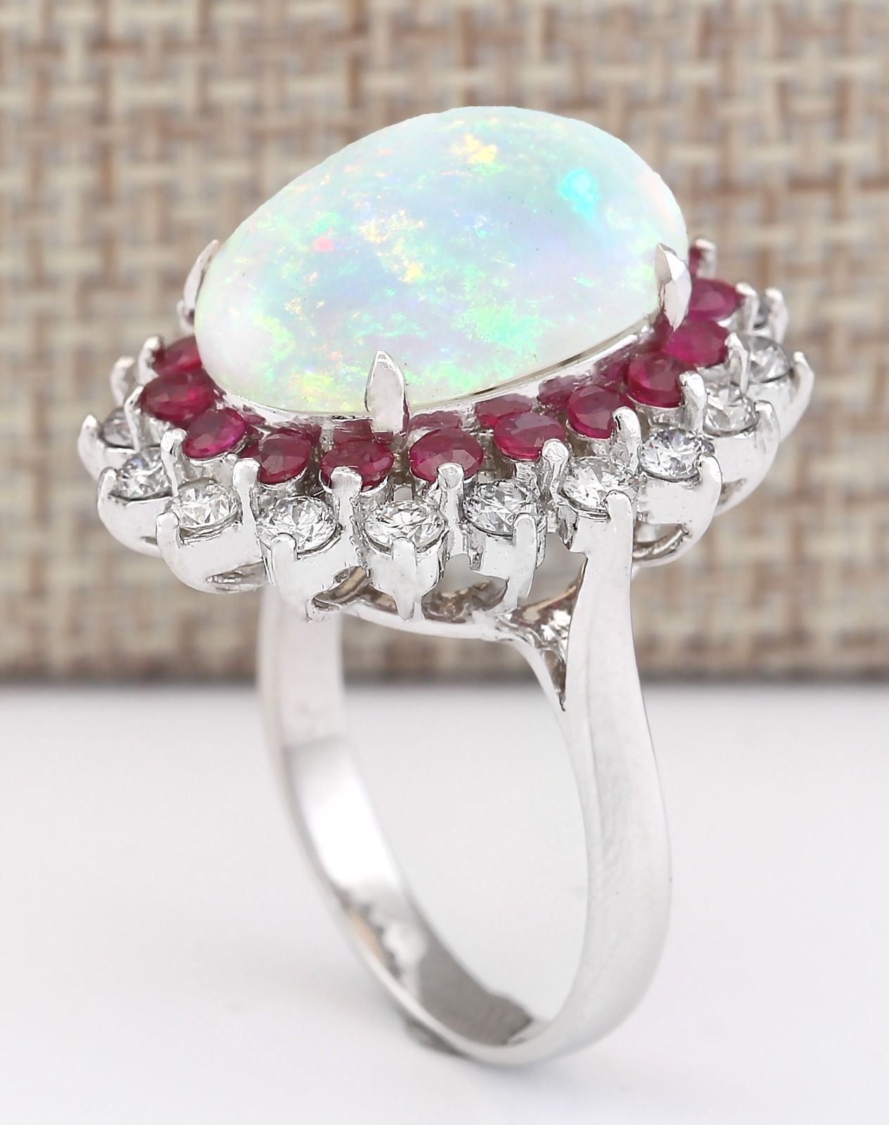 8.33 CTW Natural Opal, Ruby And Diamond Ring In18K White Gold