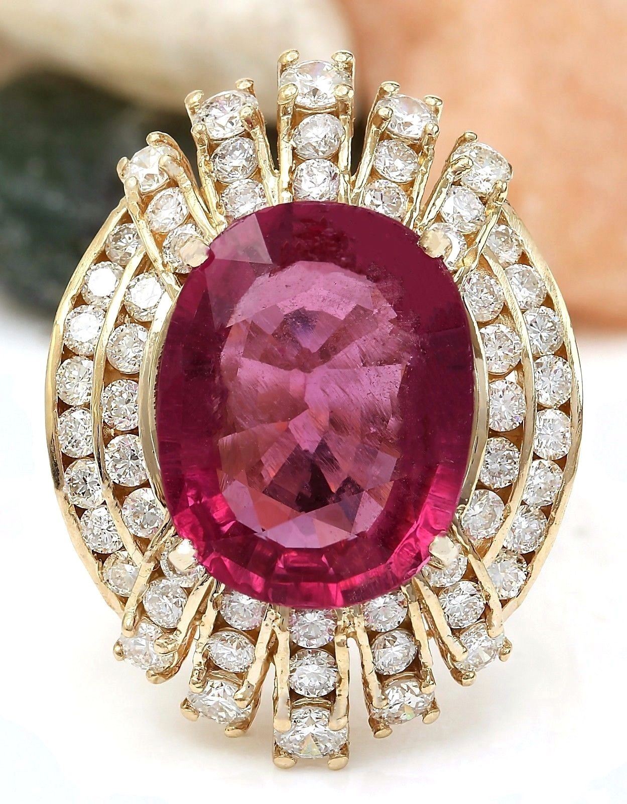 8.33 Carat Natural Tourmaline 14K Solid Yellow Gold Diamond Ring
