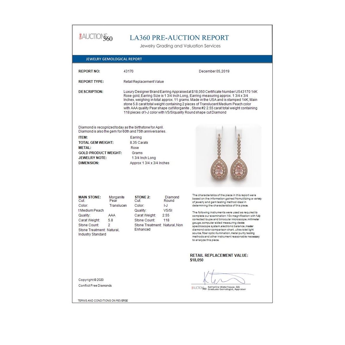 REF-364X2A - SKU: 43170 ---- 8.35 ctw Morganite & Diamond Victorian Earrings 14K Rose Gold