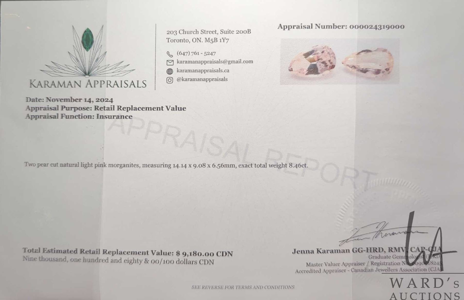 8.4 ct certified Pink Morganite pair, Certificate provided by consignor