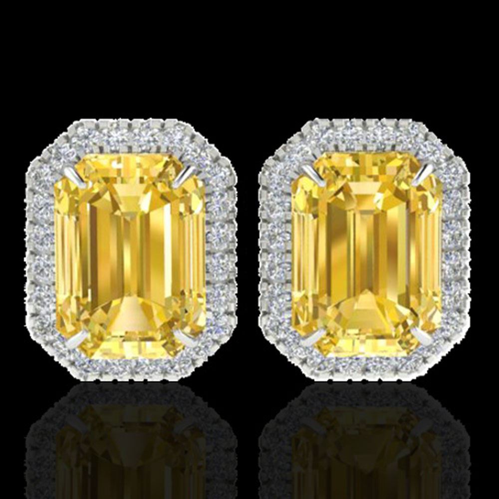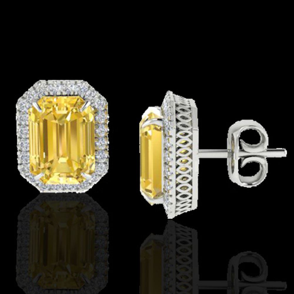 REF-80A2N - SKU: 21222 ---- 8.40 ctw Citrine & Micro Pave VS/SI Diamond Earrings 18k White Gold