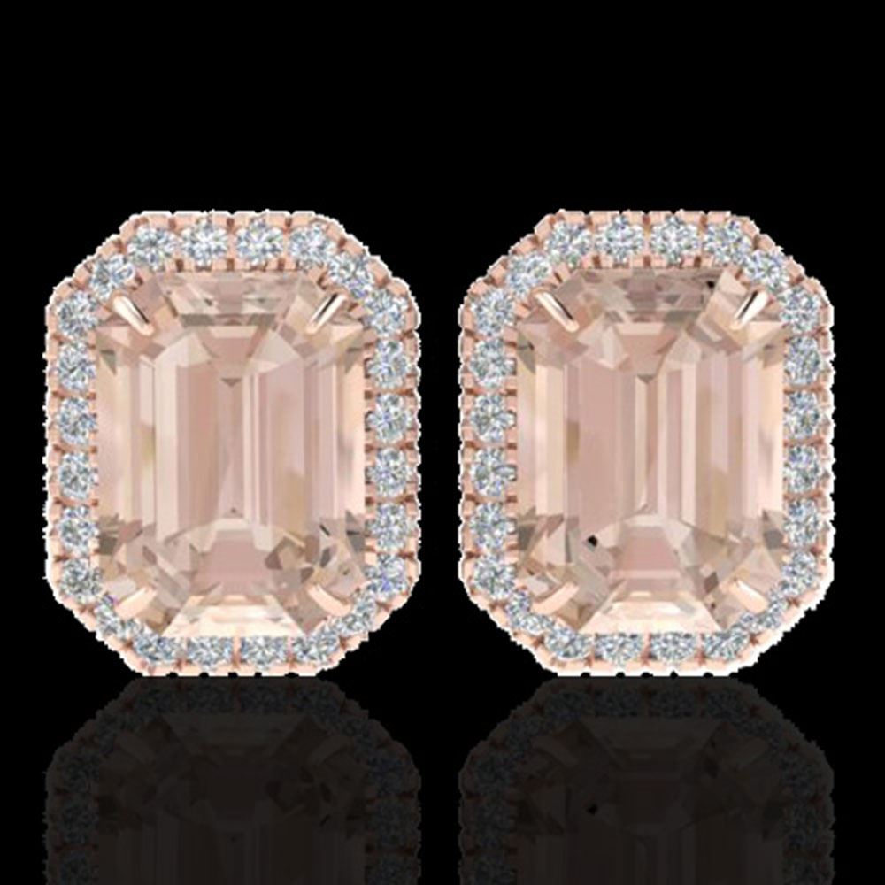 REF-202H8R - SKU: 21229 ---- 8.40 ctw Morganite & Micro Pave VS/SI Diamond Earrings 14k Rose Gold