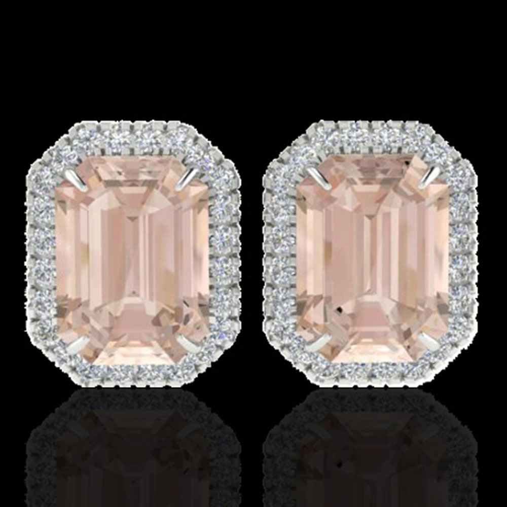 REF-210N8F - SKU: 21230 ---- 8.40 ctw Morganite & Micro Pave VS/SI Diamond Earrings 18k White Gold
