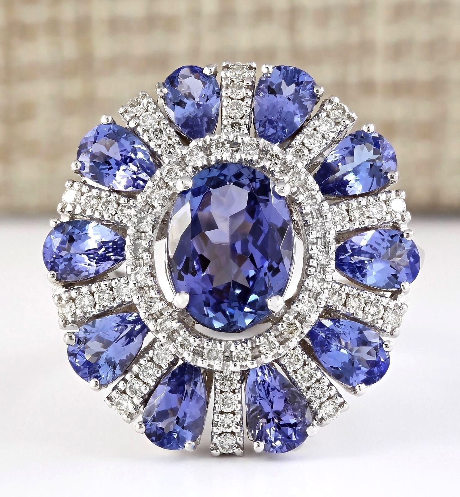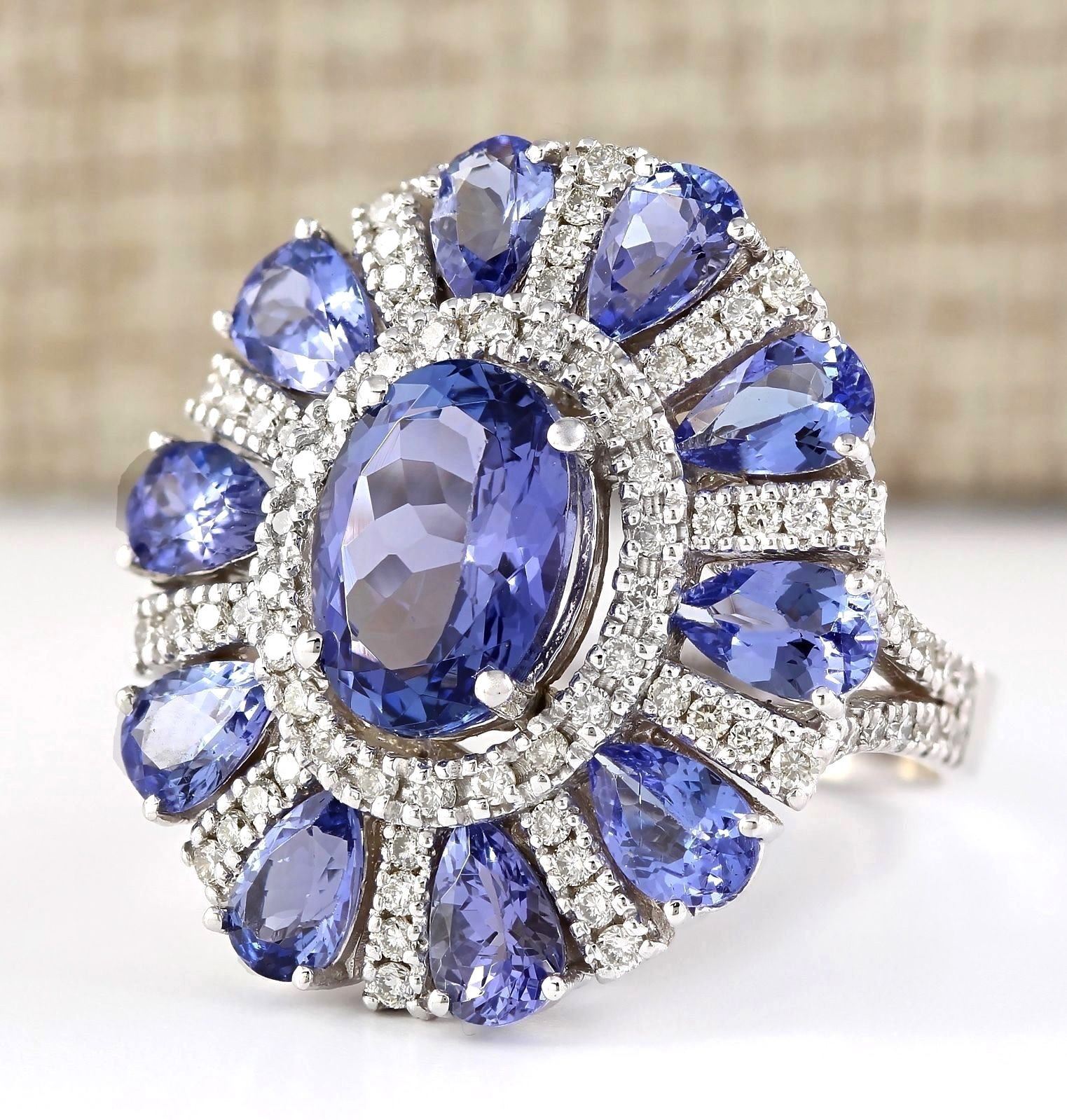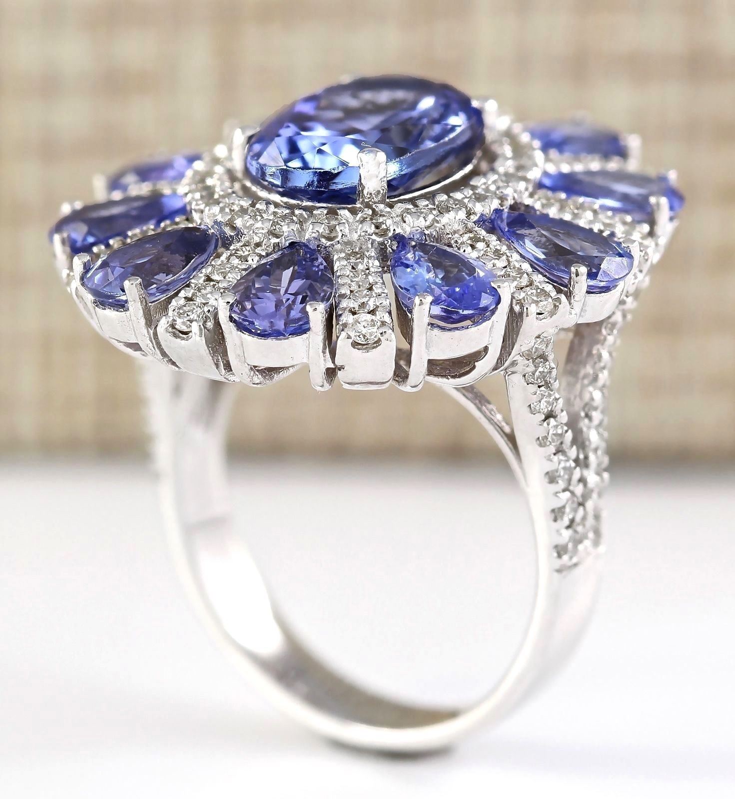 8.41 CTW Natural Tanzanite And Diamond Ring In 14k White Gold