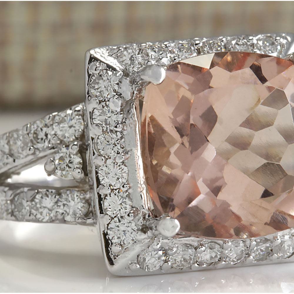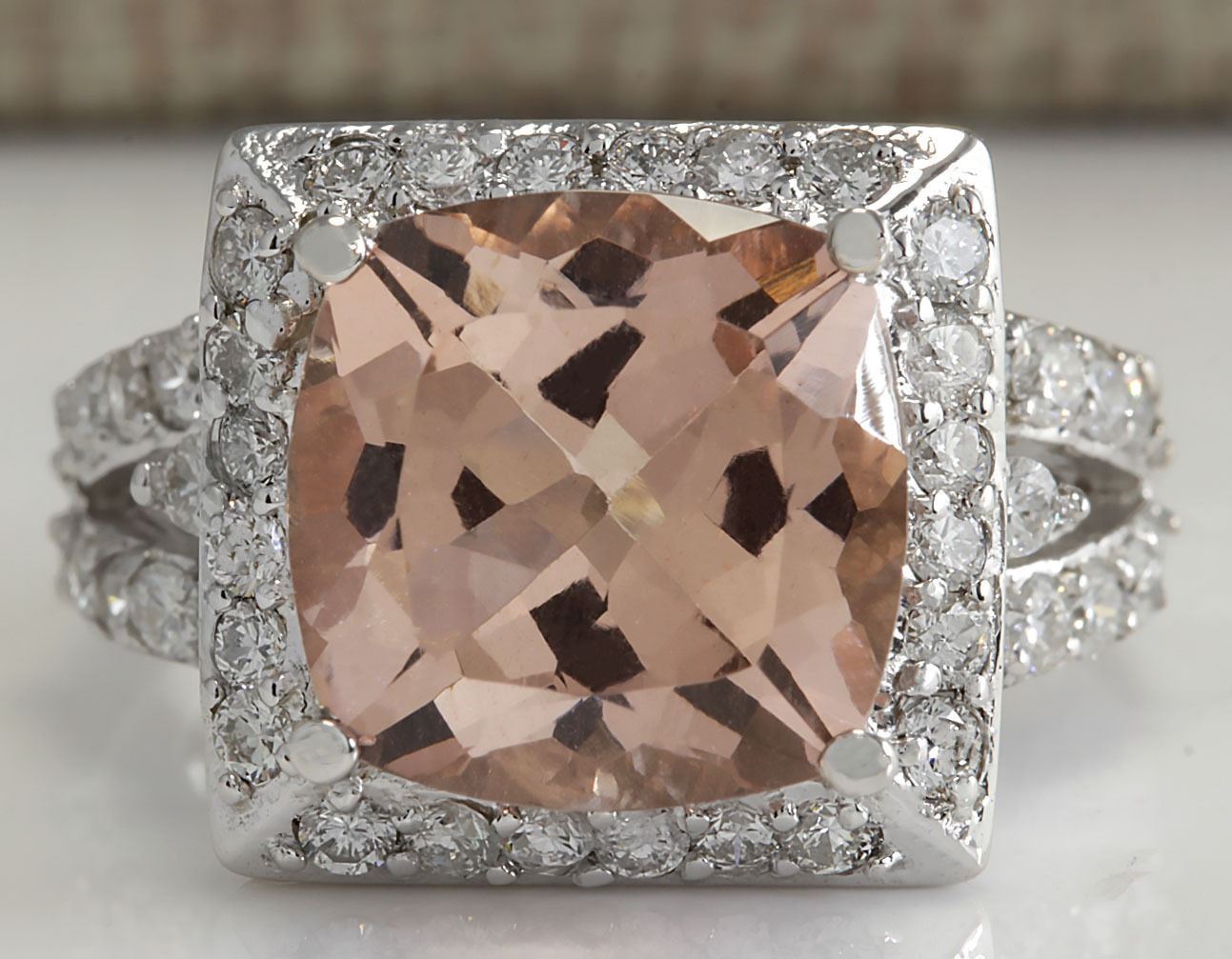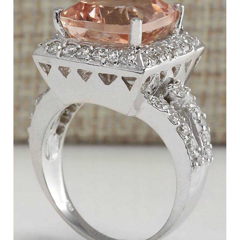 8.42 CTW Natural Peach Morganite And Diamond Ring In 14K Solid White Gold