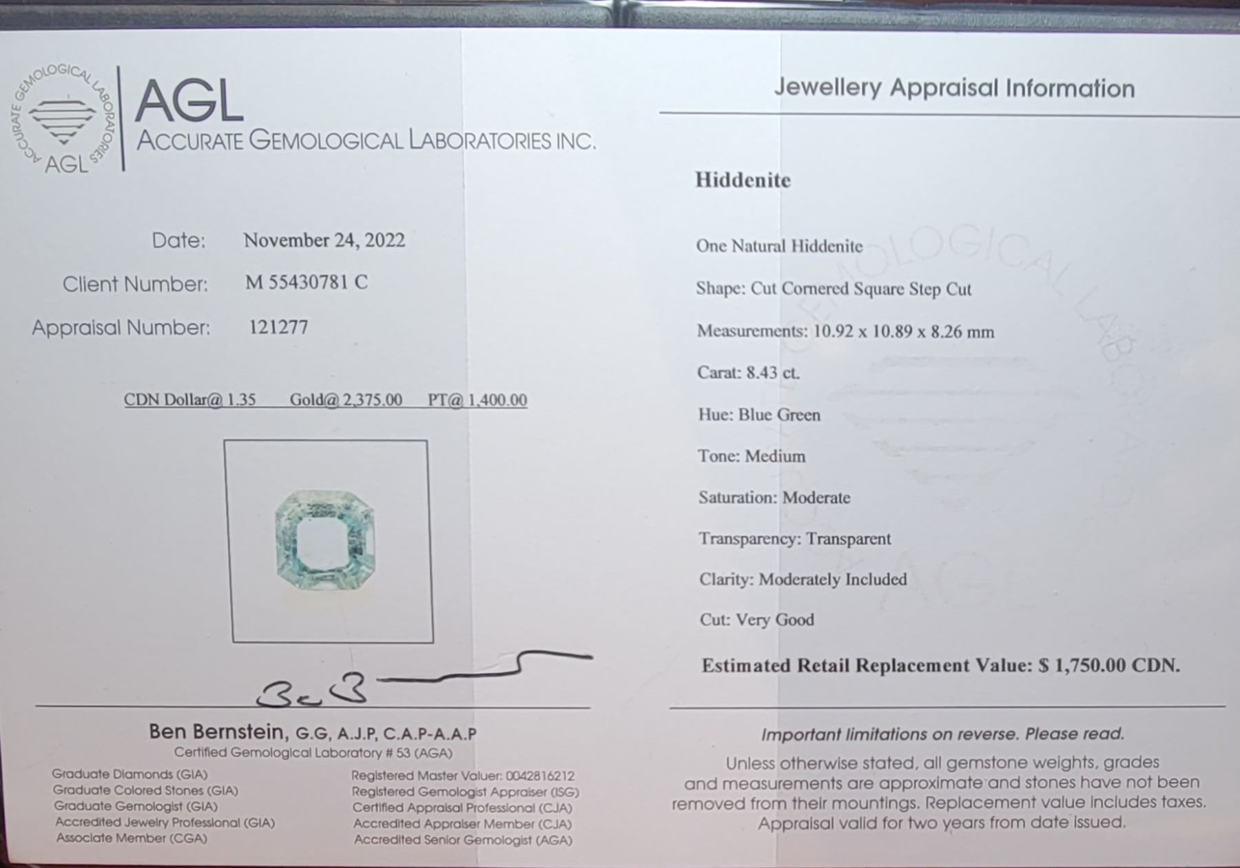 SIGNATURE GEM - SQUARE STEP CUT - INCLUDES APPRAISAL CERTIFICATE **ALL ITEMS MUST BE REMOVED BY 5PM SATURDAY, JANUARY 21ST 2023. ALL MAGIC SPACE ITEMS MUST BE REMOVED BY WEDNESDAY, JANUARY 18TH AND ARE LOCATED AT 9058-22 AVENUE SW #102. **ALL REMAINING ITEMS WILL BE SUBJECT TO A $6.00 PER DAY STORAGE CHARGE. ANY ITEMS REMAINING AFTER MONDAY, FEBRUARY 6TH, 2023 WILL BE CONSIDERED FORFEITED. NO REFUNDS WILL BE ISSUED FOR FORFEITED ITEMS. TO SCHEDULE A PICK UP APPOINTMENT CLICK HERE