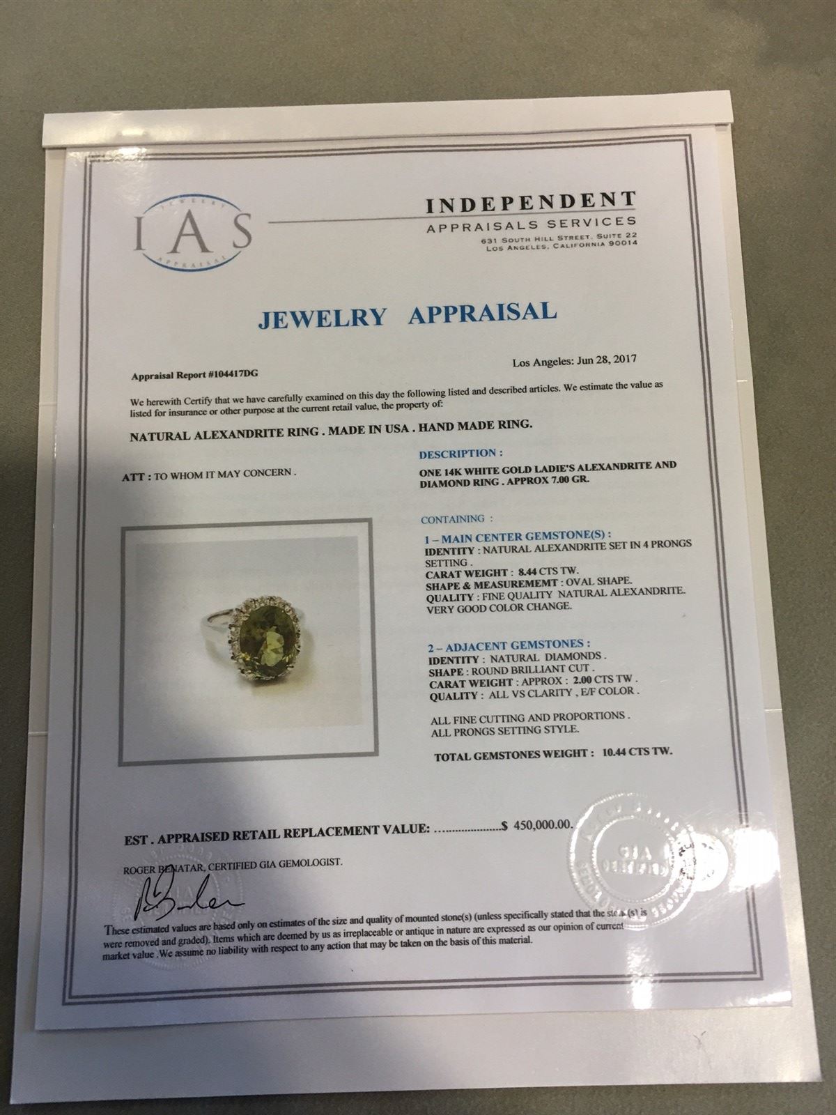 14K WHITE GOLD RING 7.00GR / DIAMOND 2.00CT / ALEXANDRITE 8.44CT