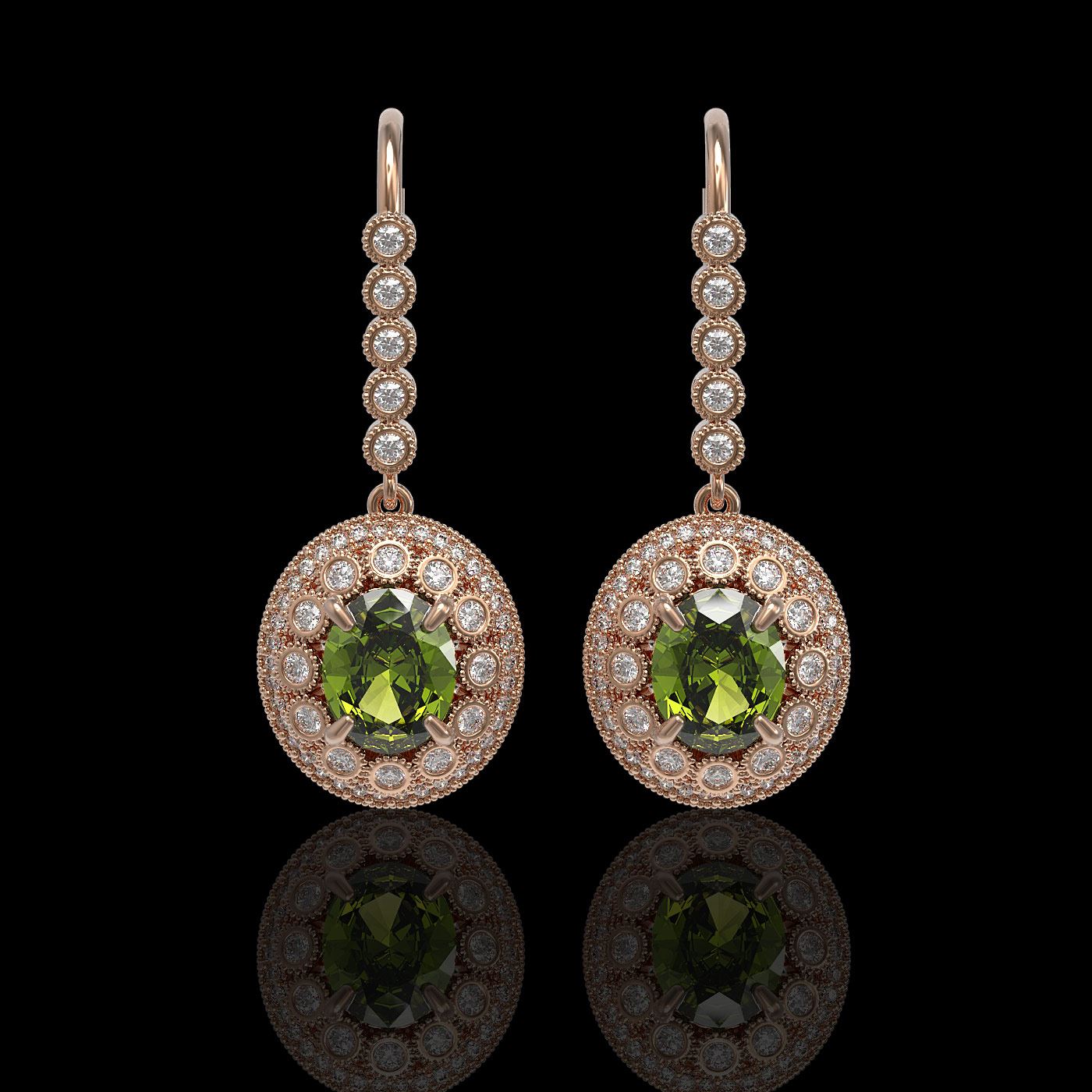 REF-250H8R - SKU: 43623 ---- 8.45 ctw Tourmaline & Diamond Victorian Earrings 14K Rose Gold