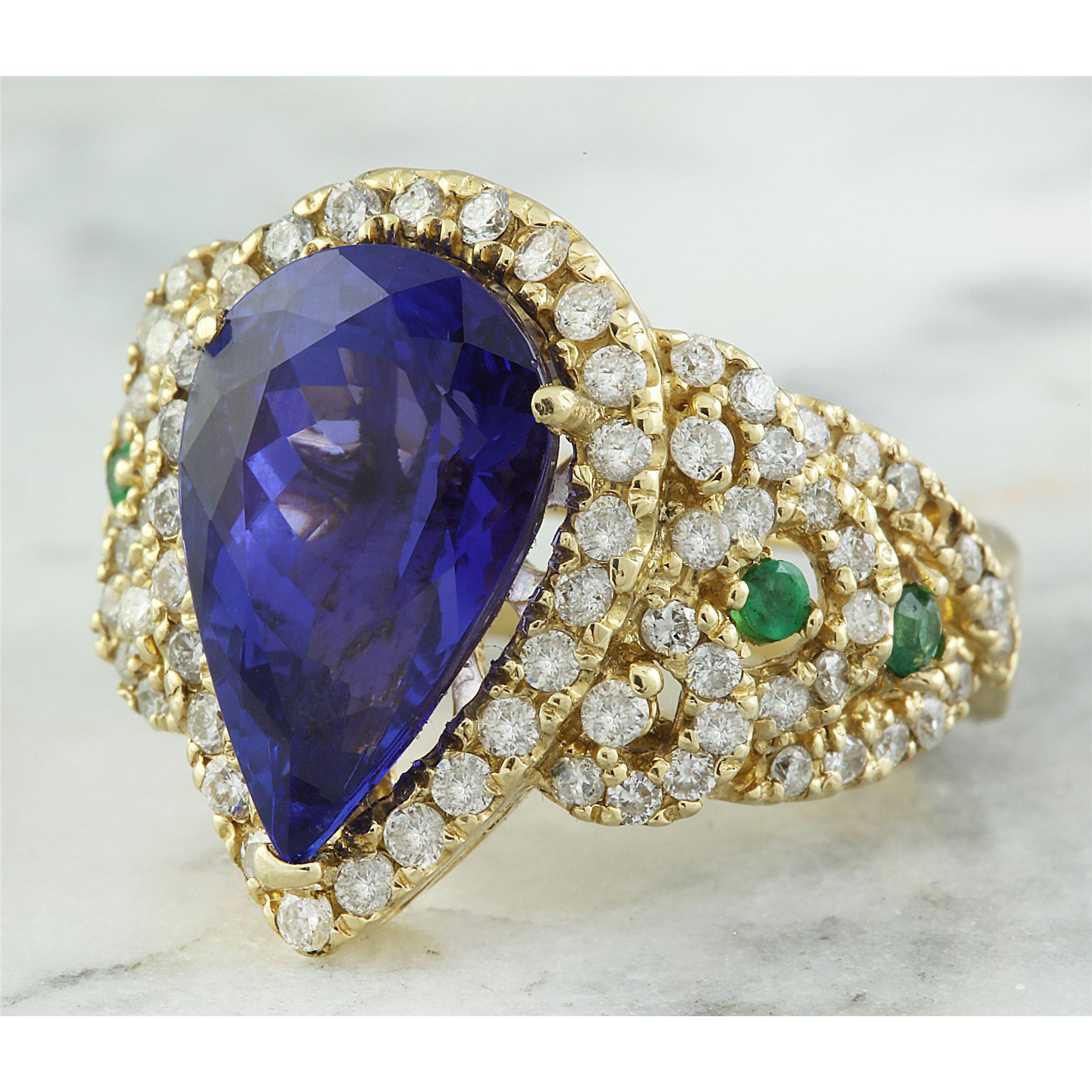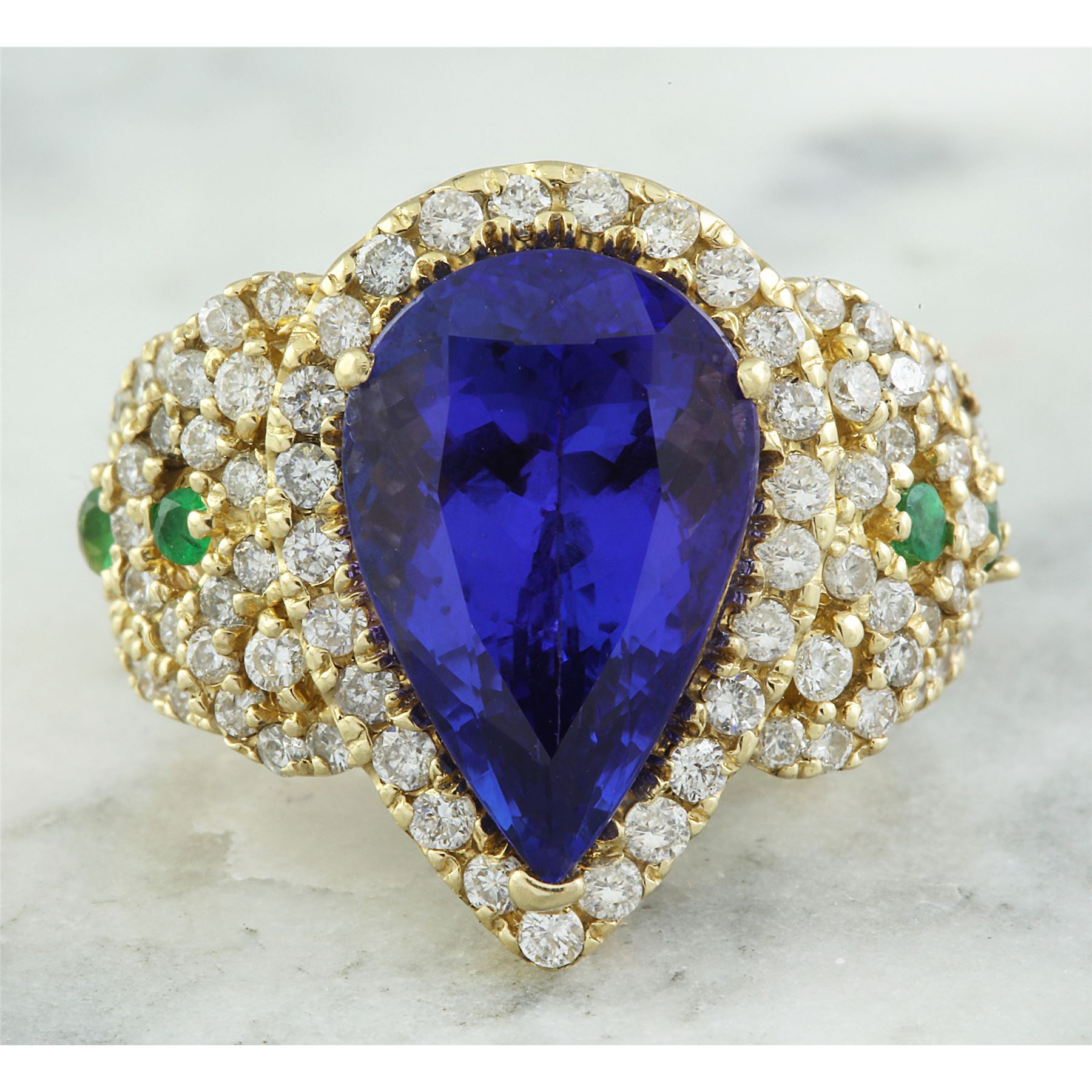 8.47 CTW Tanzanite, Emerald 14K Yellow Gold Diamond Ring