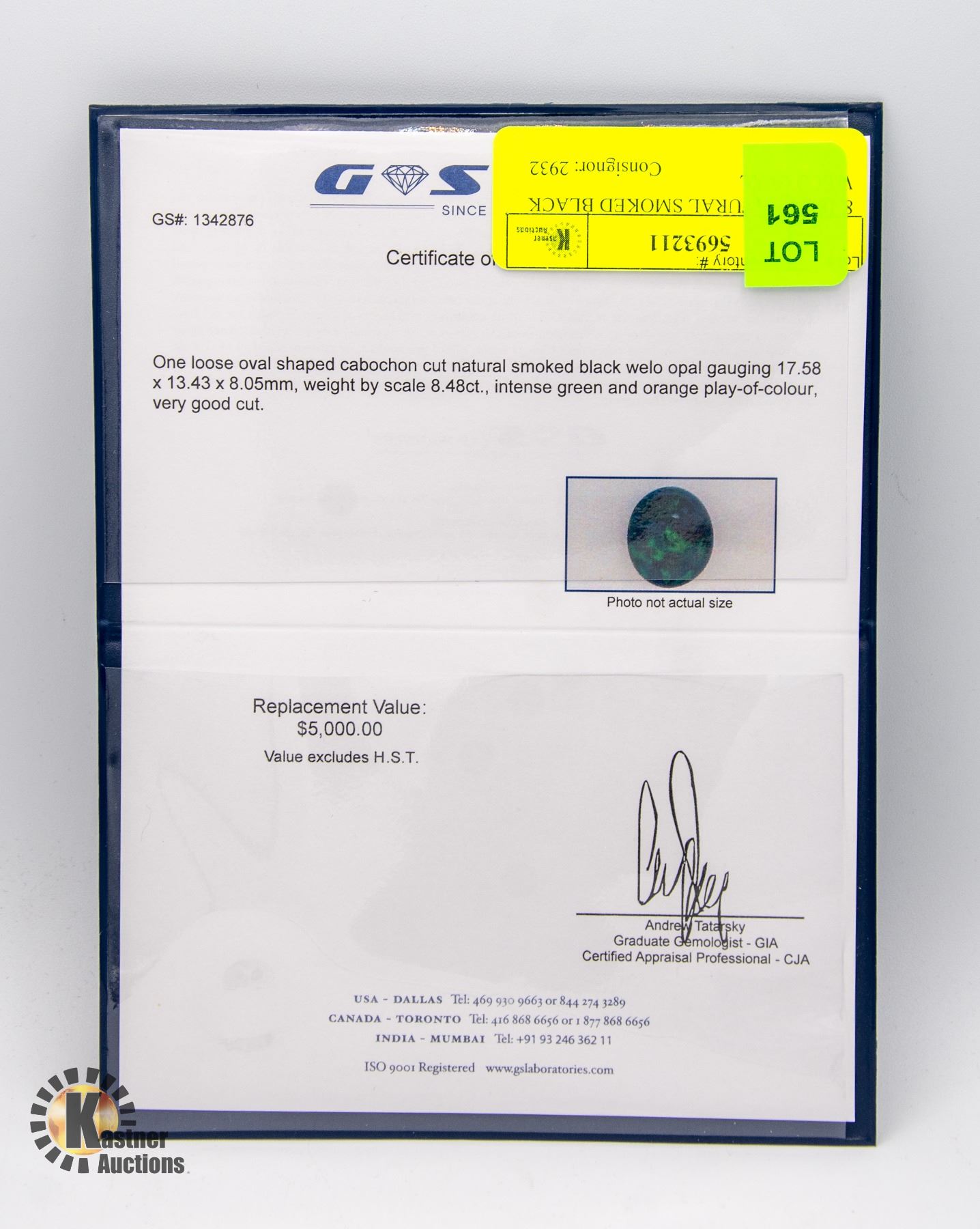 CABOCHON CUT, MEASURING 17.58 X 13.43 X 8.05MM, WITH INTENSE GREEN AND ORANGE PLAY OF COLOR, VERY GOOD CUT. COMES WITH APPRAISAL FROM G S LABORATORIES (APPRAISAL NUMBER 1342876) APPRAISED VALUE $5,000. **ALL ITEMS MUST BE REMOVED BY 5PM SATURDAY, SEPTHEMBER 16TH 2023. ALL REMAINING ITEMS WILL BE SUBJECT TO A $6.00 PER DAY STORAGE CHARGE. ANY ITEMS REMAINING AFTER MONDAY, OCTOBER 2ND, 2023 WILL BE CONSIDERED FORFEITED. NO REFUNDS WILL BE ISSUED FOR FORFEITED ITEMS. TO SCHEDULE A PICK UP APPOINTMENT CLICK HERE