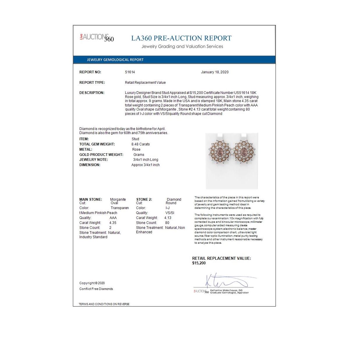 REF-345H5R - SKU: 51614 ---- 8.48 ctw Morganite & Diamond Earrings 18K Rose Gold