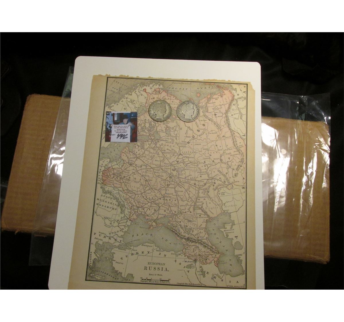 8 5/8" x 10 7/8" Map of "European Russia" ready for framing; & 1904 O & 05 S Barber Half Dollars in G-AG.