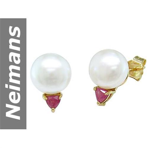 </tr></table><table border=0 width=100% cellspacing=0 cellpadding=10><tr><td valign=top style='background-repeat: no-repeat; font-family: Verdana; font-size: 8pt'><b><!-- ///START/// INSERT JEWELRY SPECIFIC DATA --><font size=5>Graduate Gemologist Certified 8.5 MM Culture Pearl & Ruby Earrings elegantly set in solid 14kt gold!!</font><font size=5>