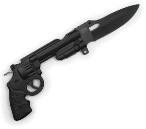 8.5" SPRING ASSISTED BLACK .44 MAG GUN STYLE KNIFE W/HO **|**|** 8.5" SPRING ASSISTED BLACK .44 MAG GUN STYLE KNIFE W/HOLSTER