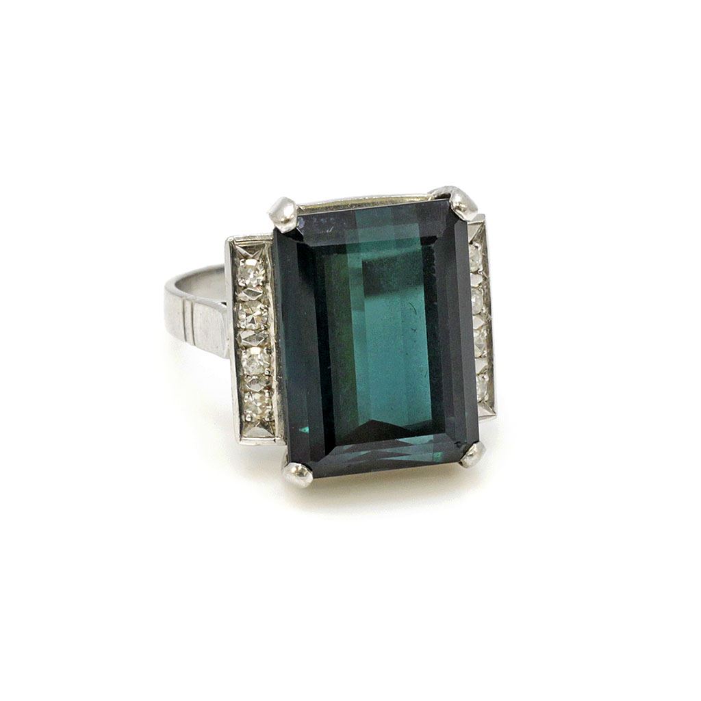 Approximately 8.5 ct Tourmaline Diamond Platinum Ring