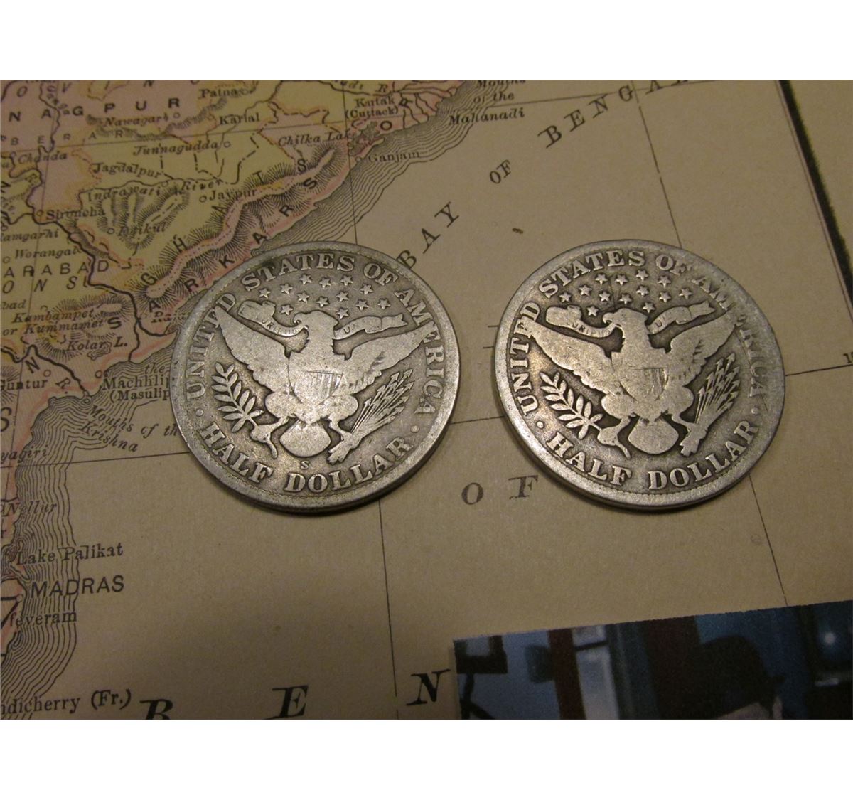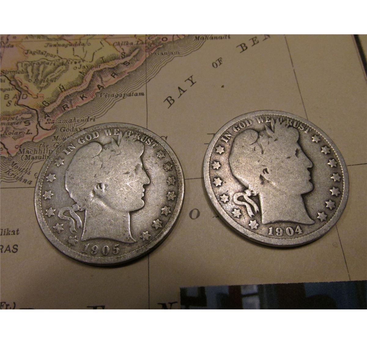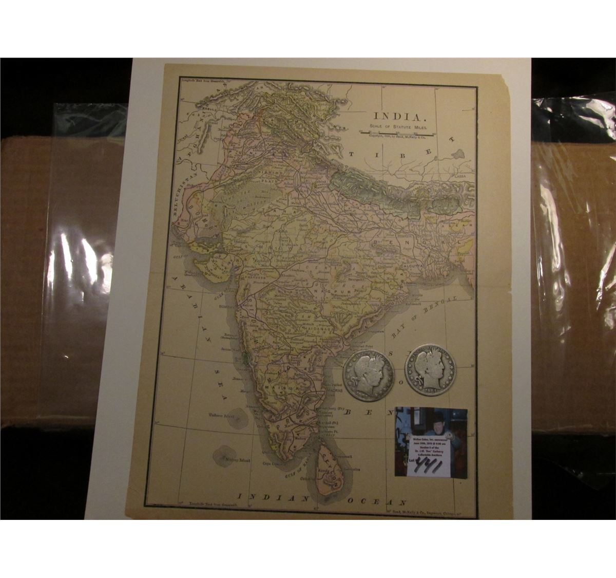 8.5" x 11" Map of "India" ready for framing; & 1904 P & 05 S Barber Half Dollars in G-AG.