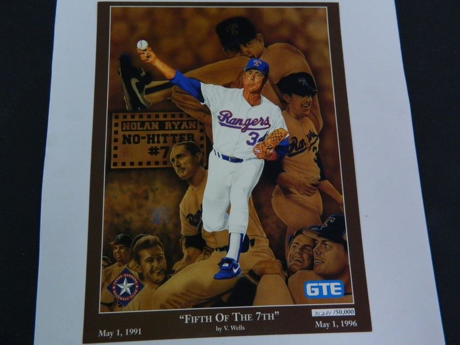 8.5" x 11" Nolan Ryan 7th (and final) NO HITTER, #d of 50,000, Five Year Anniv. of 7th NONO