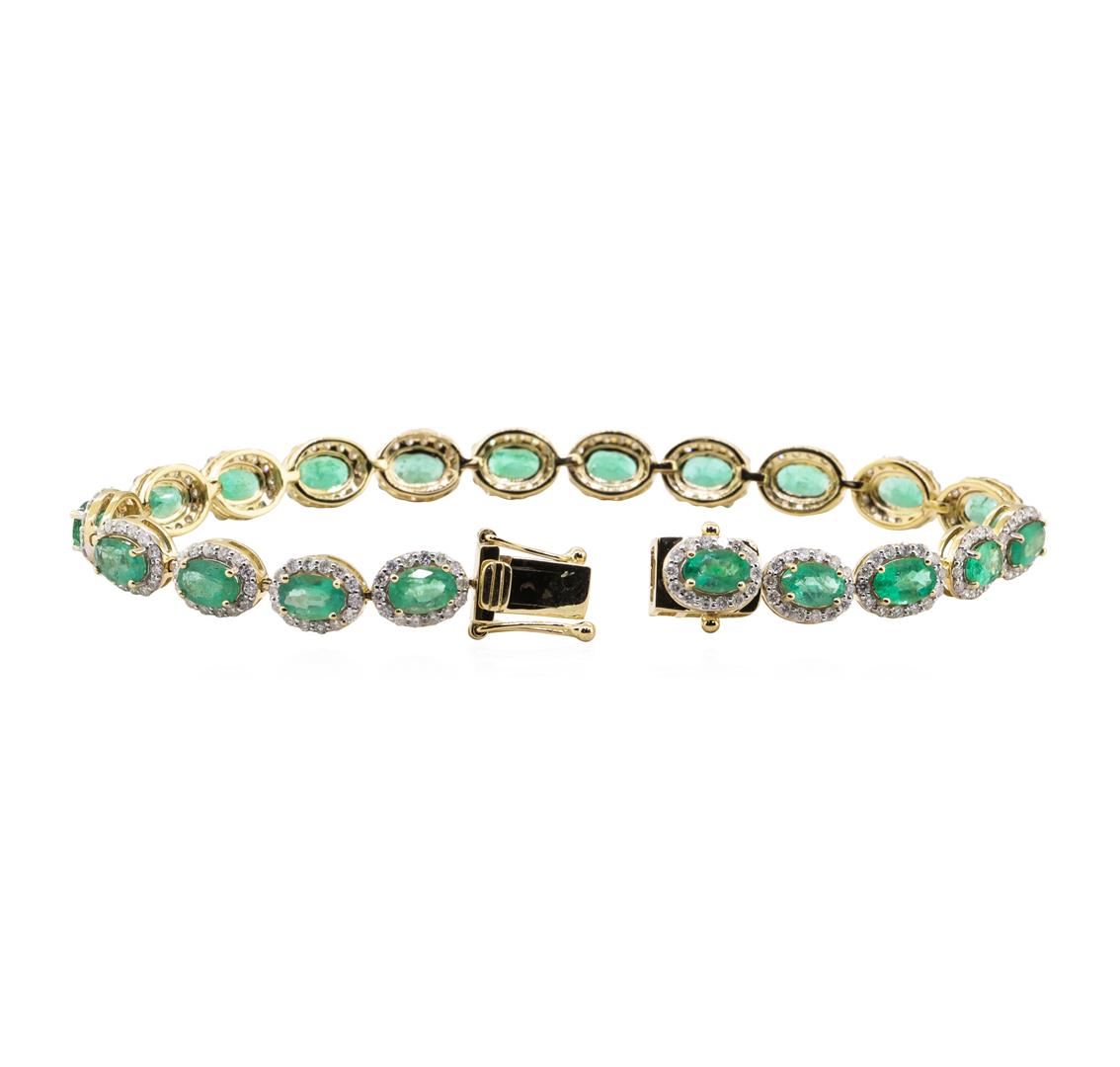 One 8.51ctw Emerald and Diamond Bracelet - 14KT Yellow Gold. AIG certified. See Appraisal for more details. AIG Appraised.