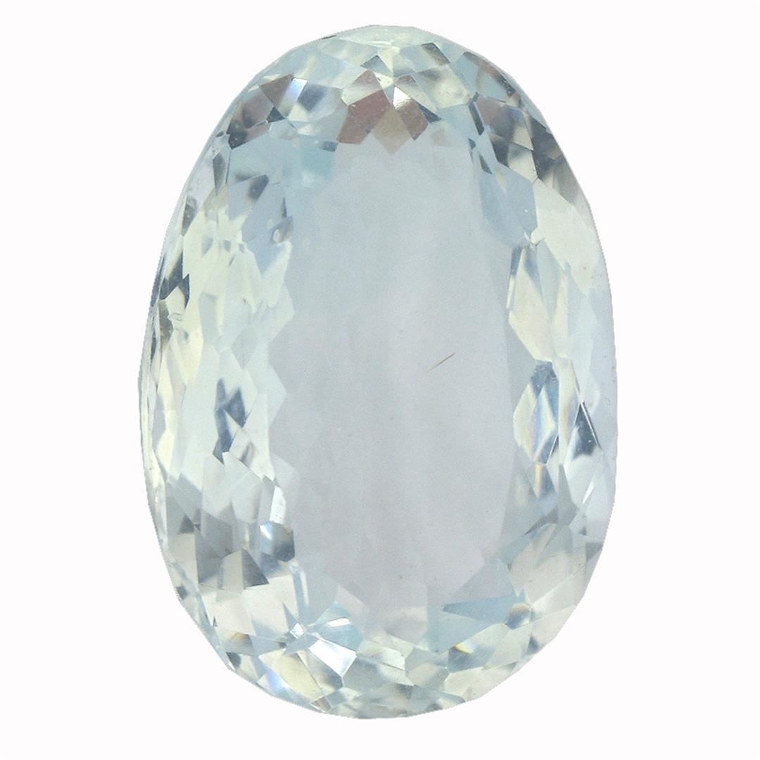 One oval cut natural aquamarine exact weight 8.53ct., clarity is slightly included, type I, medium, slightly grayish, very slightly greenish blue color, (GIA vslgB 5/2), cut is good. Westfield Appraised at $3,285.00.